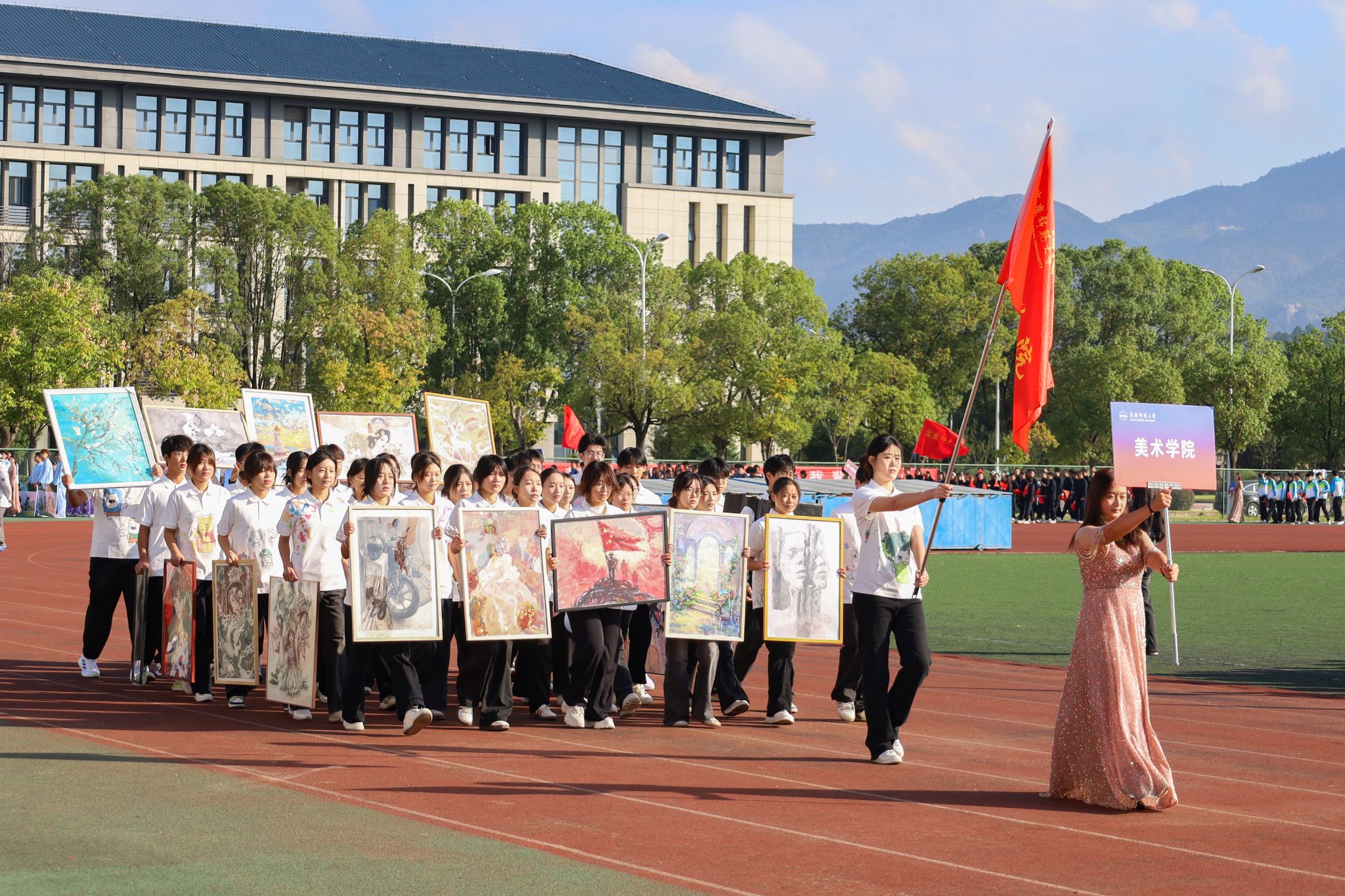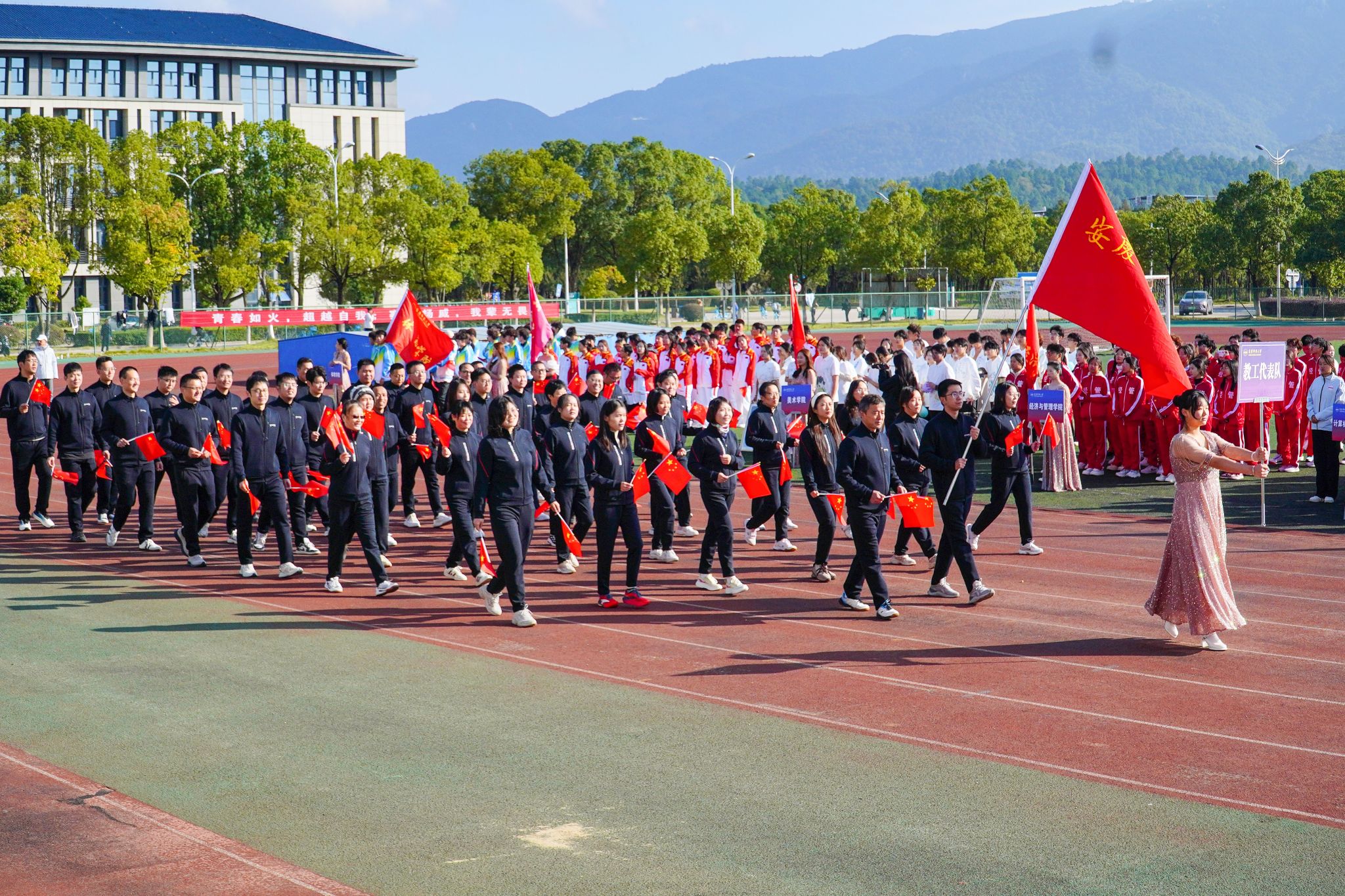 各学院代表队、教工代表队、裁判代表队别出心裁,将学科专业与创意展示巧妙融合入场式,迈着自信而整齐的步伐走过主席台。每一个独具匠心的方阵呈现时,都引来全场阵阵掌声与赞叹,展现出师生奋发向上、朝气蓬勃的青春风采。