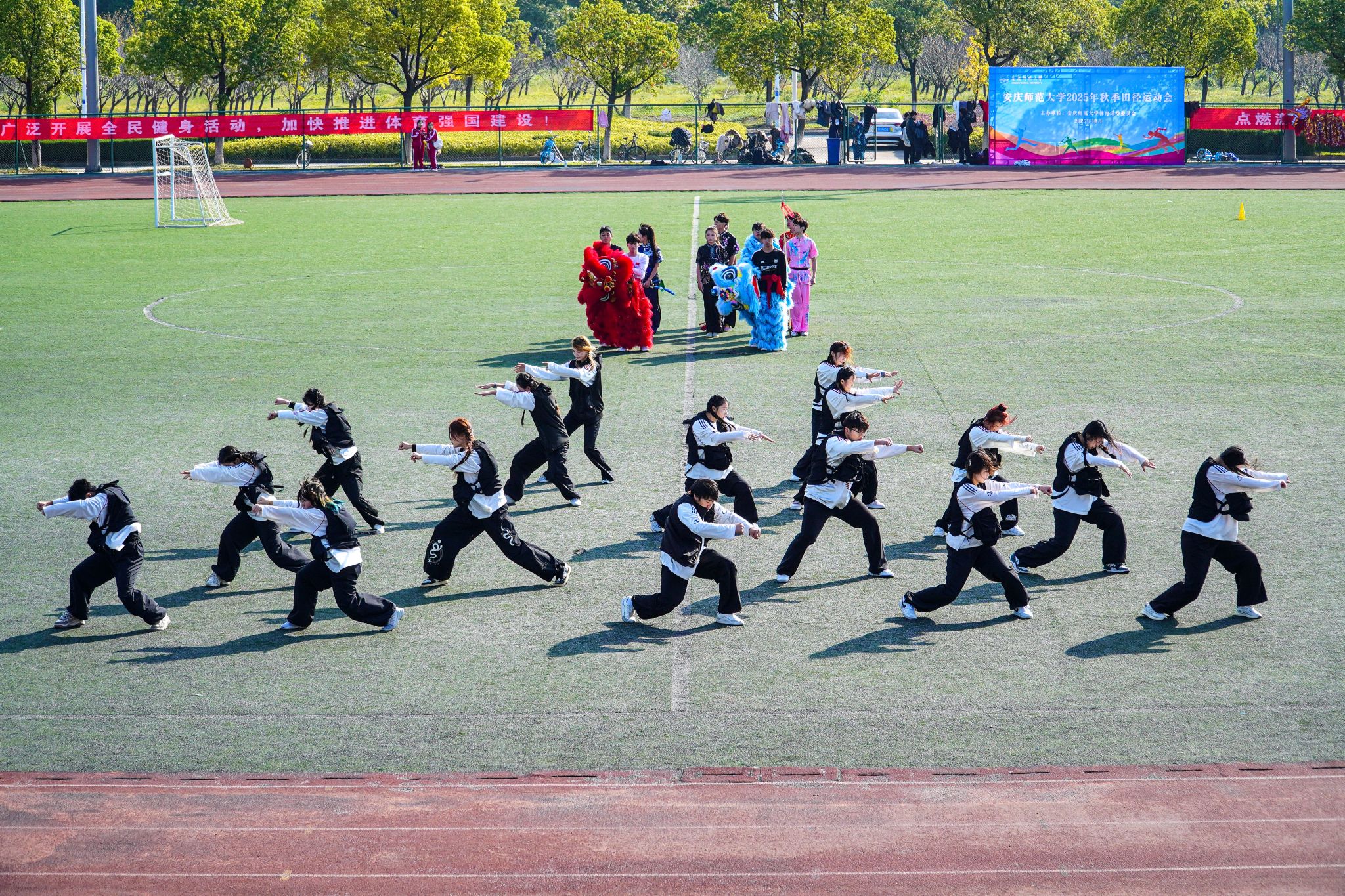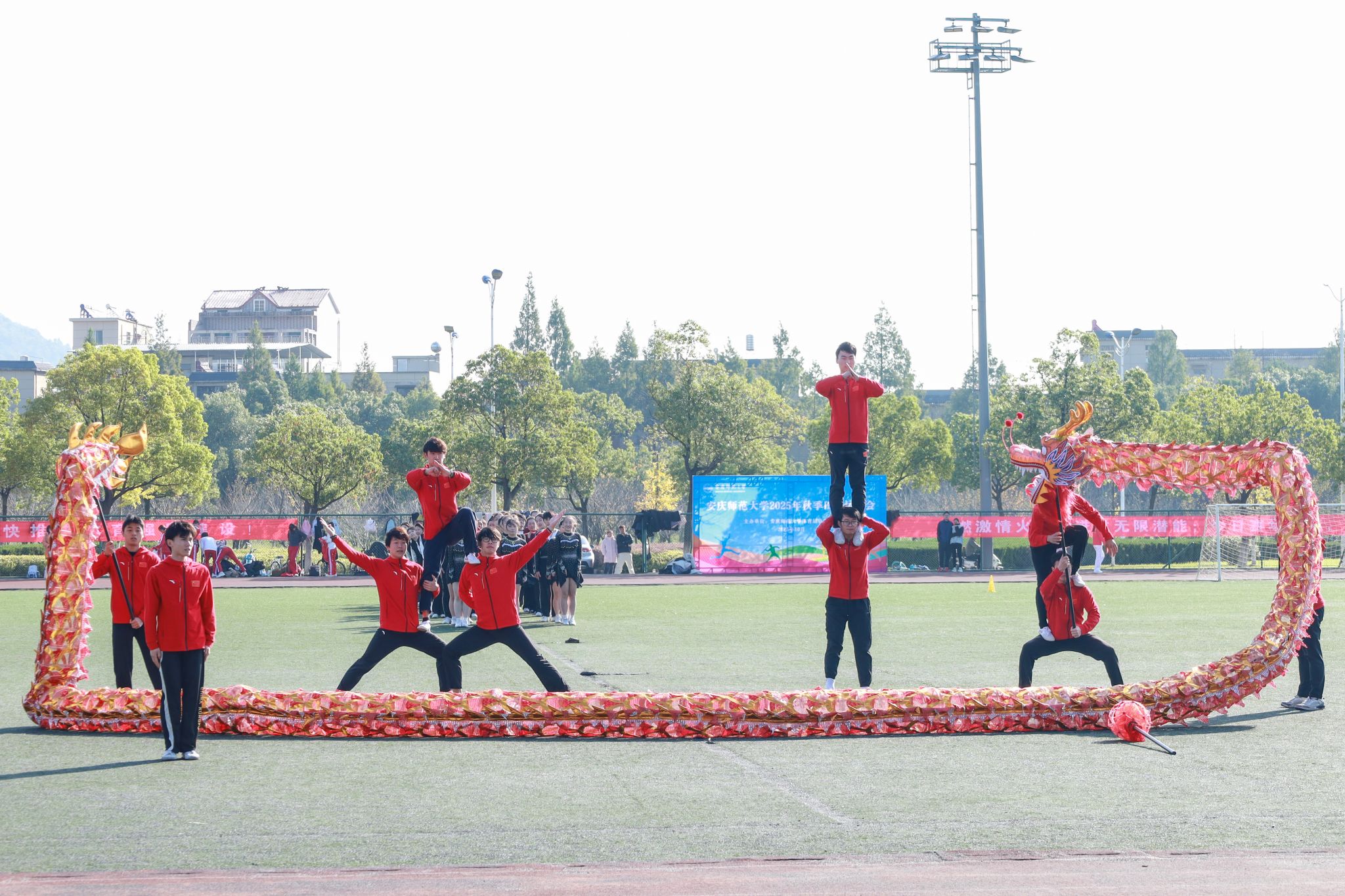 在激昂澎湃的旋律中,学校龙狮队率先登场,带来开场表演《龙耀中华》,队员们驾驭“巨龙”奔腾跳跃,矫健身姿将力量与柔美融于一体,再现省赛冠军风采;《女驸马》将拉丁舞步与黄梅戏曲结合,舞步飞扬间,让传统与现代碰撞出全新火花;爵士啦啦操表演《跃动燃情》的每一次跳跃、旋转都充满着热情和活力,点燃全场氛围;街舞表演《舞力全开》用灵活肢体诠释热血,用鲜明动作释放个性,跳出青春最酷的模样;在武术表演《醒狮弄武》中,队员们刚柔并济,让刚毅武术与灵动雄狮交融,用震撼演绎点燃了全场的拼搏火焰。