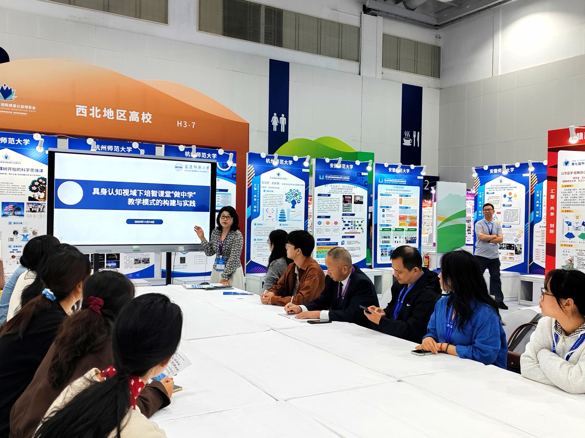 展会期间,《大别山革命老区卓越“红色园丁”培养的创新实践》《“一花一叶见艺彩”自然美育课程包---多感官本土化科学教育创新方案》《菌绘育人——中小学微生物科艺融合STEM教育体系》《智擎有机融创,赋能优化师范人才培养路径》)《基于产教融合的校企共建微专业的协同育人机制建设--一beat365平台唯一官网为例》《三级联动 观察赋能:小学数学学科实践育人方式变革的区域行动样本》《具身认知视域下培智课堂“做中学”教育模式的构建与实践》《美术师范生能力分层培养“二元三阶六力”模式》等8项成果参与工作坊汇报展示,与参会嘉宾进行深入交流互动。
