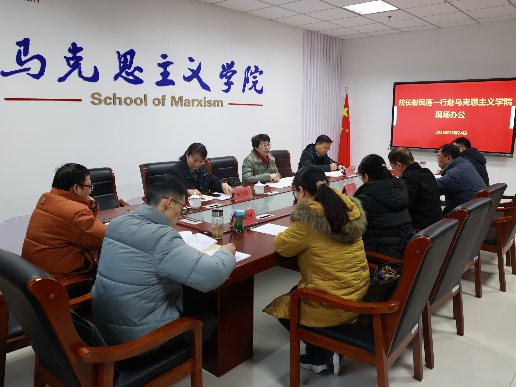 12月24日,校长彭凤莲赴马克思主义学院召开现场办公会。人事处、研究生院主要负责人,学院党政领导班子、科级以上干部、教研室主任(教师党支部书记)、学科带头人、青年教师代表参加会议。