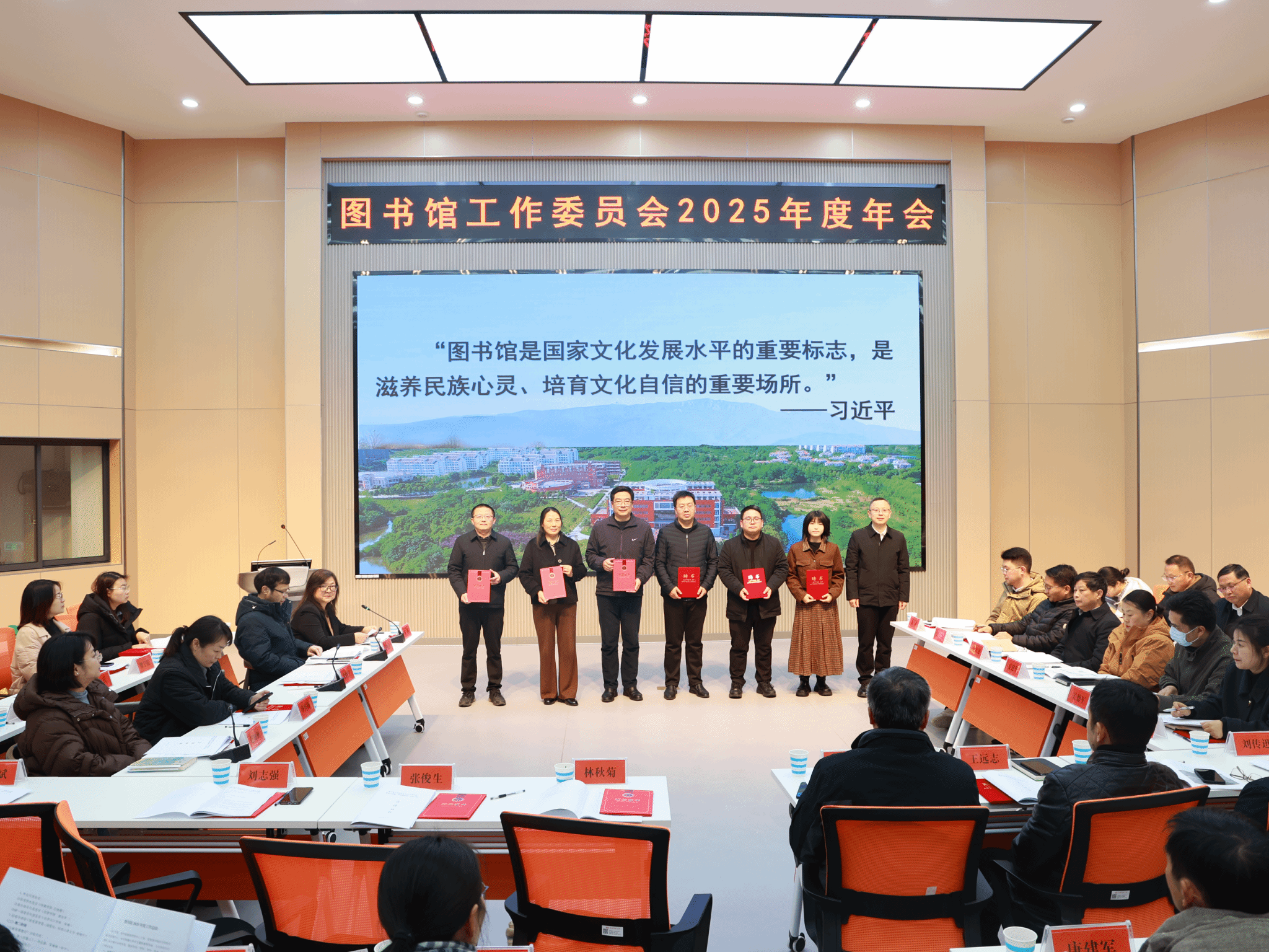 12月24日,图书馆工作委员会2025年度年会在图书馆西报告厅召开。校党委常委、副校长徐晓宁出席会议并讲话。校图书馆工作委员会委员、获奖师生代表及图书馆全体员工参加会议。