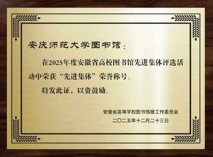 日前,安徽省高等学校图书情报工作委员会公布了“安徽省高校图书馆2025年度先进集体和先进个人名单”,beat365官网图书馆连续第三年获评“先进集体”,三名职工获评“优秀馆长”“先进工作者”。