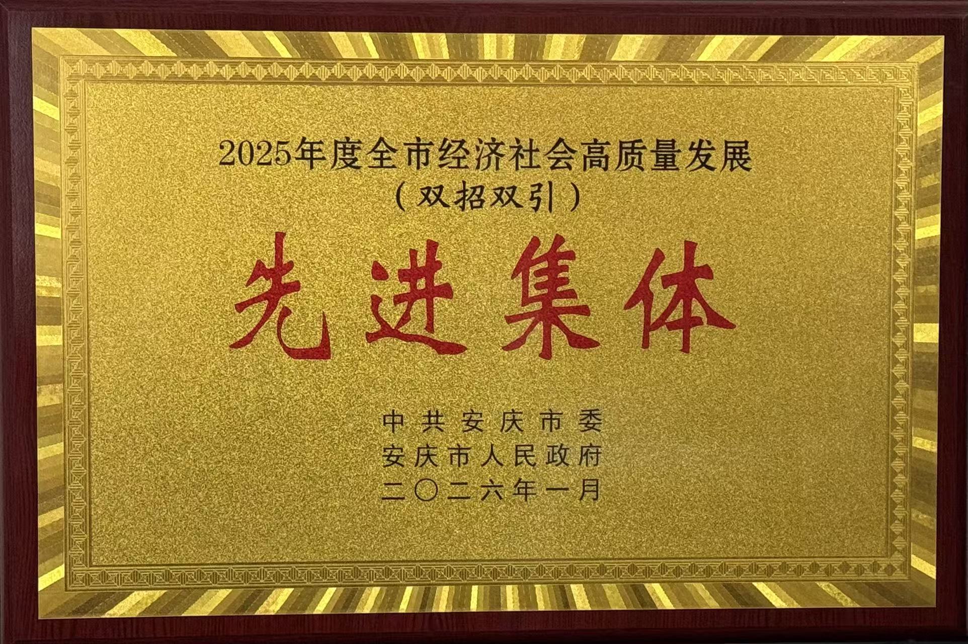 1月18日上午,安庆市优化营商环境推进“双招双引”大会在市政务中心召开。会上宣布了《关于表彰2025年度全市经济社会高质量发展先进集体和先进个人的决定》,学校被授予“2025年度全市经济社会高质量发展(双招双引)先进集体”称号。