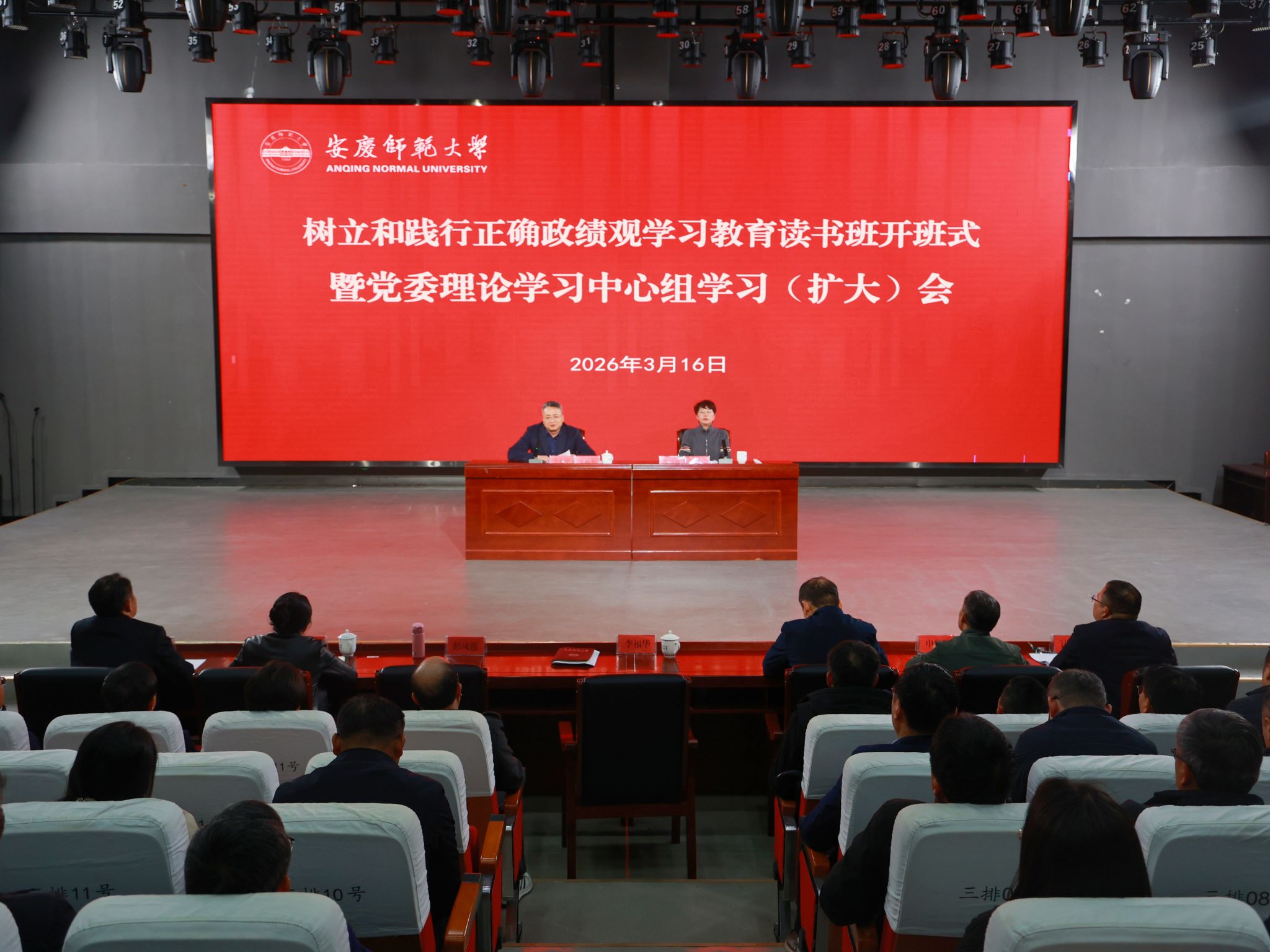 李福华要求,要深刻认识开展树立和践行正确政绩观学习教育的重大意义。坚持全面系统学、及时跟进学、深入思考学、联系实际学,自觉做新时代党的创新理论的坚定信仰者和忠实实践者。发挥“关键少数”示范引领作用,把思想摆进去、把职责摆进去、把工作摆进去,学出坚定、学出忠诚、学出自觉,为全校党员干部当好表率、作出示范。通过此次学习教育,进一步统一思想、凝聚共识,引导全校上下坚持从实际出发、按规律办事,切实将正确政绩观内化于心、外化于行,为特色鲜明的高水平大学建设提供坚强政治保障。要深刻理解准确把握“立党为公、为民造福、科学决策、真抓实干”的总要求。树立和践行正确政绩观,必须站稳立党为公的立场、锚定为民造福的目的、把握科学决策的路径、弘扬真抓实干的作风,在政治、思想、行动、作风上全面发力,努力创造经得起实践、人民、历史检验的实绩。牢牢把握学习教育的总要求,深刻理解其核心要义、精神实质、丰富内涵、实践要求,切实贯彻落实到学习教育的全过程各方面。要切实将学习教育成果转化为高质量发展成效。深刻领悟和把握党中央决策部署的全局考虑和战略考量,锚定服务基本实现社会主义现代化目标,在服务国家重大战略和区域经济社会发展急需中锻造核心竞争力,在推进教育科技人才一体化发展中激发创新活力,在扎根安庆、融入长三角、服务“三地一区”建设中彰显师大担当。以“功成不必在我”的精神境界和“功成必定有我”的历史担当,谋深谋实全年重点工作任务、主要发展目标和各项行动举措,高质量制定实施“十五五”规划,以勇于担当、真抓实干的作风抓好贯彻落实,奋力谱写特色鲜明的高水平大学建设新篇章。