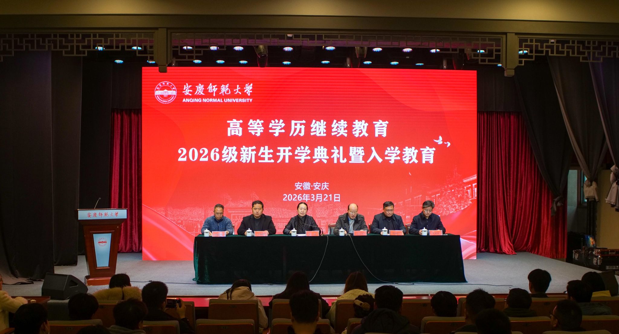 吴琼代表学校向全体2026级高等学历继续教育新生表示热烈欢迎,介绍学校办学历史、办学成绩以及学校学历继续教育的基本情况,结合新时代国家发展大局、高等教育发展趋势与继续教育特点,为全体新生上了一堂内涵丰富、贴近实际的思政大课。她要求,全体2026级新生要以“笃学不倦”为志,涵养求知本心,把学习融入日常、贯穿工作、伴随人生,让终身学习成为核心竞争力,在持续积累中拓宽视野、增长才干。要以“融学于行”为要,锤炼实践能力,把理论知识转化为解决实际问题的能力,积极参与实践实训,让知识在实践中落地、能力在实干中提升,真正做到学有所用、用有所成。要以“坚韧自持”为基,锻造奋进底色,以坚韧的意志克服学习道路上的困难,以自律的行动坚守学习的初心,在点滴积累中沉淀成长,在持之以恒中实现突破,用自身的努力诠释奋斗的意义。她强调,继续教育是终身学习的重要载体,更是培根铸魂的重要阵地,希望全体新生以此次开学典礼为新起点,把思政引领融入学习全过程,以自律自强的精神、求真务实的态度,在安庆师大这片沃土上勤学善思、笃行不怠,努力成长为有理想、敢担当、能吃苦、肯奋斗的新时代人才。
