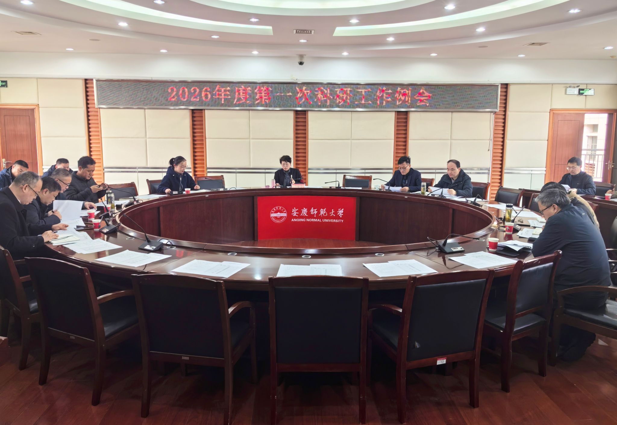 科研处主要负责人通报了学校近期各类科研项目申报情况,解读了2026年度科研工作目标任务和学校高水平科研成果积分计算办法的修订情况。服务经济社会发展处主要负责人通报了学校2026年度横向项目到账经费工作任务分解,并对下一步工作进行了安排。