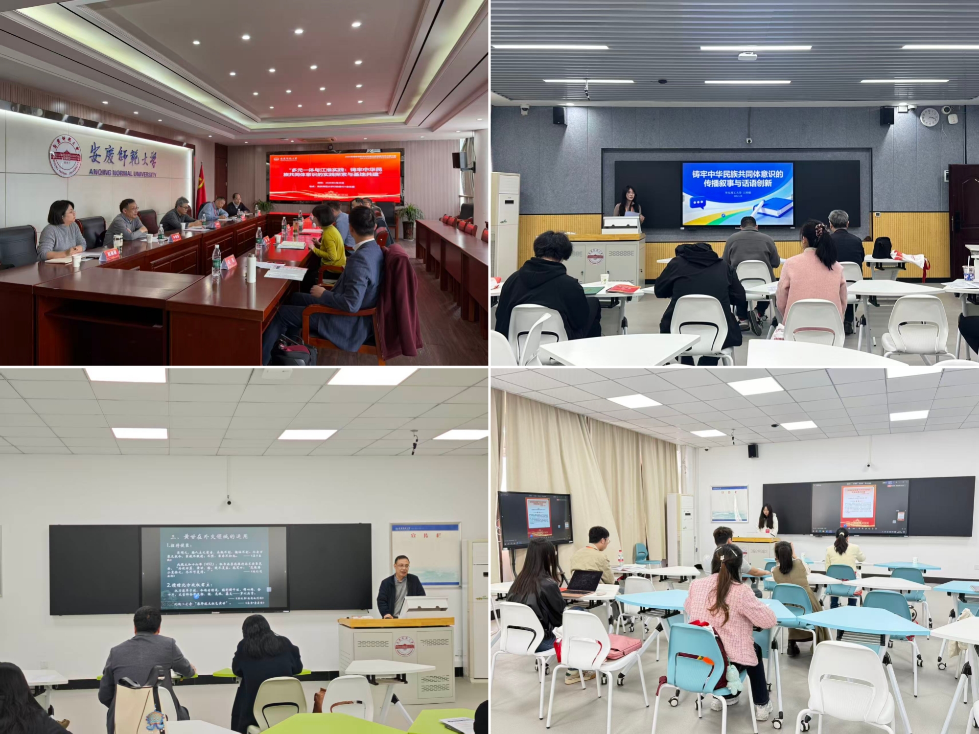本次研讨会共设一个主题沙龙、三个分论坛和两个墙报汇报小组。在“多元一体与江淮实践:铸牢中华民族共同体意识的实践探索与基地共建”主题沙龙中,来自中国科学技术大学、合肥工业大学、安徽大学、淮北师范大学、阜阳师范大学、安徽社会主义学院等单位的专家围绕铸牢中华民族共同体意识研究与基地建设展开交流。在分论坛研讨环节,与会学者分别就“铸牢中华民族共同体意识的理论逻辑与创新路径”“中华民族共同体的历史演进与铸牢中华民族共同体意识的区域实践”“中华优秀传统文化铸牢民族文化认同”等议题展开交流讨论。(撰稿:张昀 摄影:学生记者 冀丽鑫 明慧 朱婷婷 编辑:范龙超 审核:周多奇 赵丽丽)