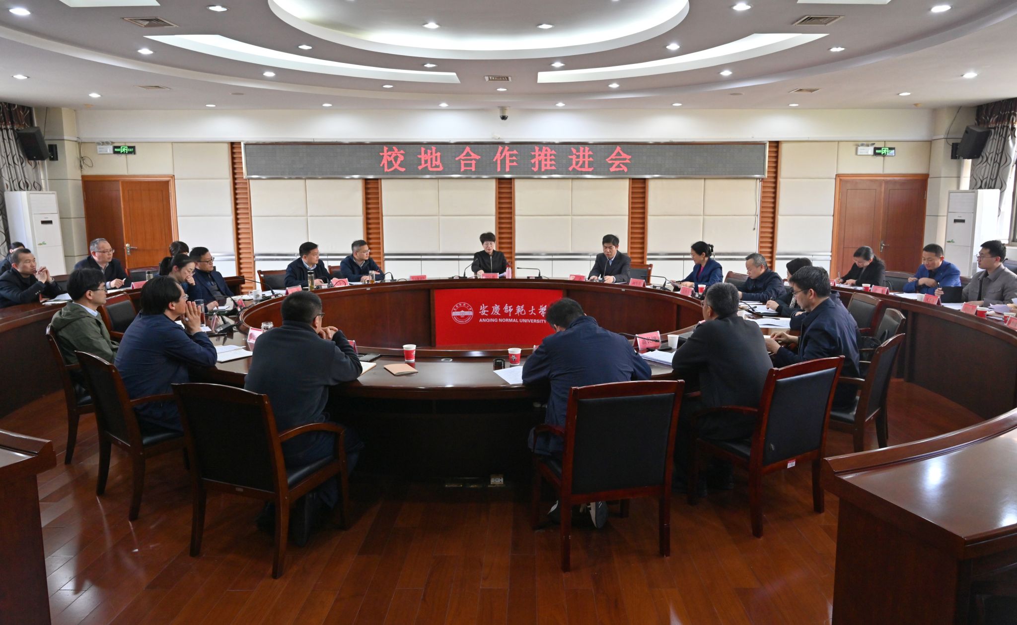 4月1日,宜秀区委书记郑志率队来校开展合作交流。会前,校党委书记李福华与郑志亲切交流校地合作相关事宜,为后续推进会的顺利开展奠定了良好基础。推进会由校长彭凤莲主持,宜秀区相关部门负责人,校发展规划处、人事处、科研处、服务经济社会发展处、财务处、安全管理处、基建与后勤管理处、附属龙城幼儿园、法学院及生命科学与食品工程学院等单位负责同志参加。