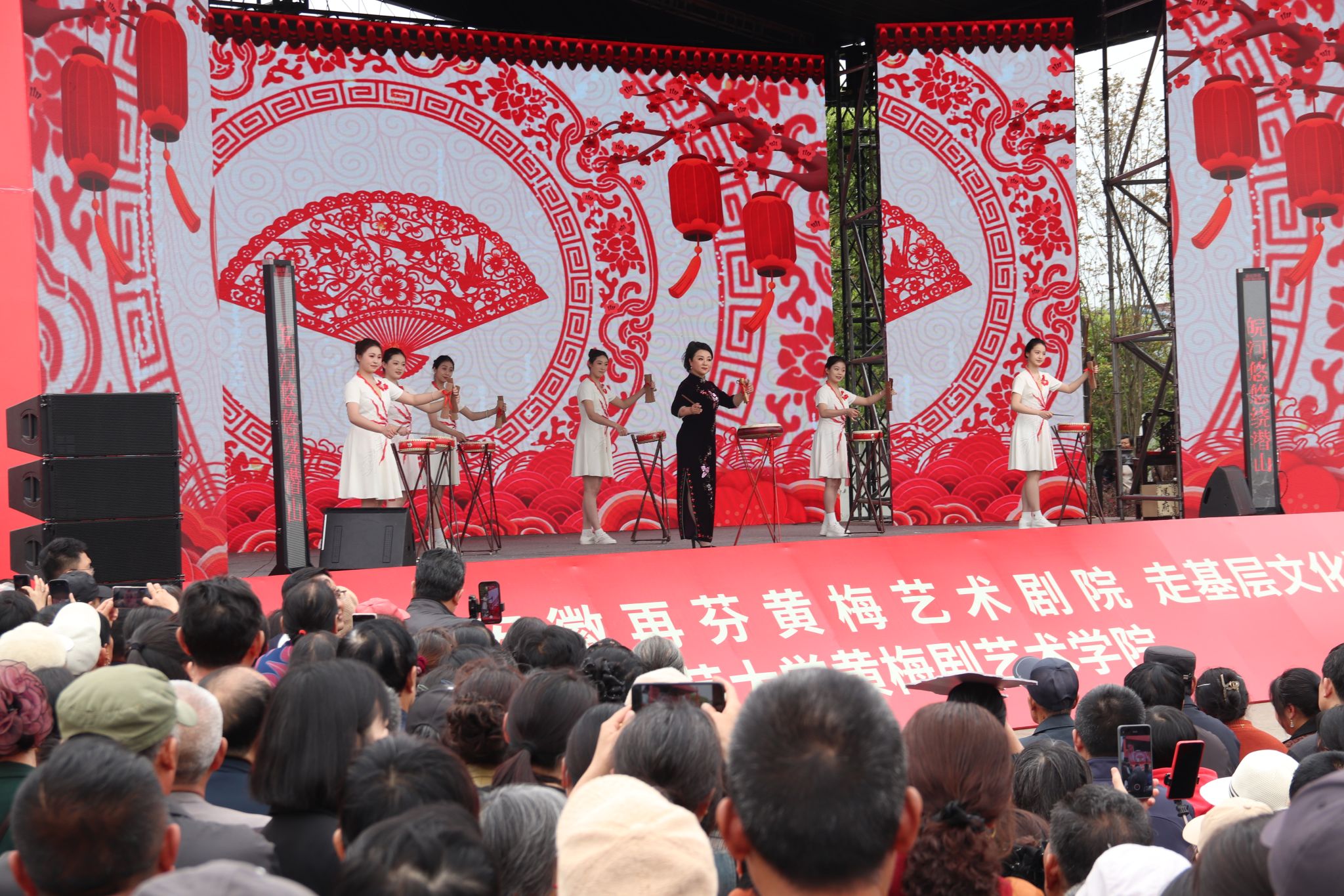 此次演出由黄梅戏表演艺术家、黄梅剧艺术学院学术院长韩再芬领衔,黄梅剧艺术学院教师余淑华、汪莉、李俊、丁飞与青年学子联袂登台,为当地戏迷献上一场黄梅戏文化盛宴。现场座无虚席、掌声不断,充分展现戏曲之乡深厚的文化底蕴与群众热情。