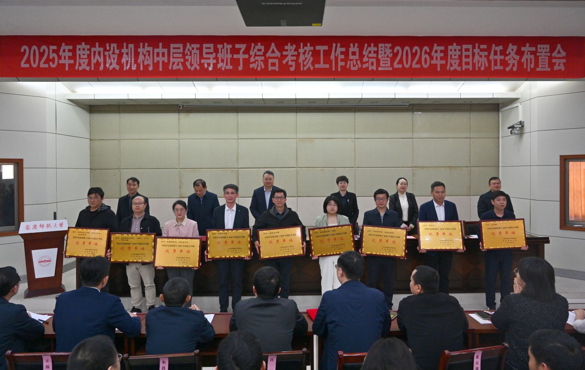 会上,崔明宣读了学校《关于2025年度中层领导班子和领导人员综合考核“优秀”等次的通报》《关于2025年度基层纪检工作考核结果的通报》。全体与会校党政领导为2025年度考核“优秀”的单位、个人颁发了奖牌和荣誉证书。