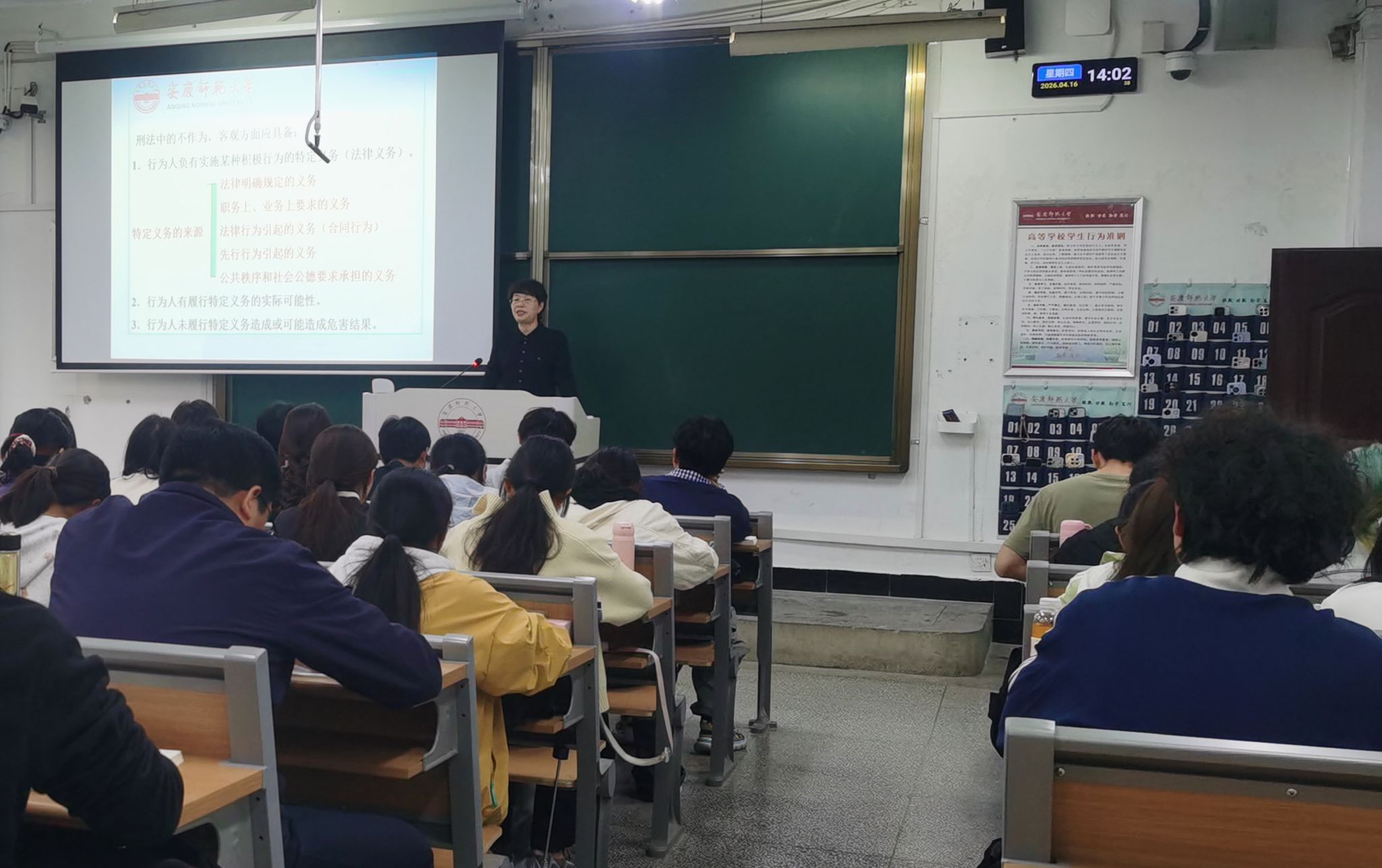 4月16日,校长彭凤莲教授讲授国家级一流本科课程《刑法总论》示范公开课。教务处、法学院负责同志和学院全体青年教师、教学骨干参加观摩学习。