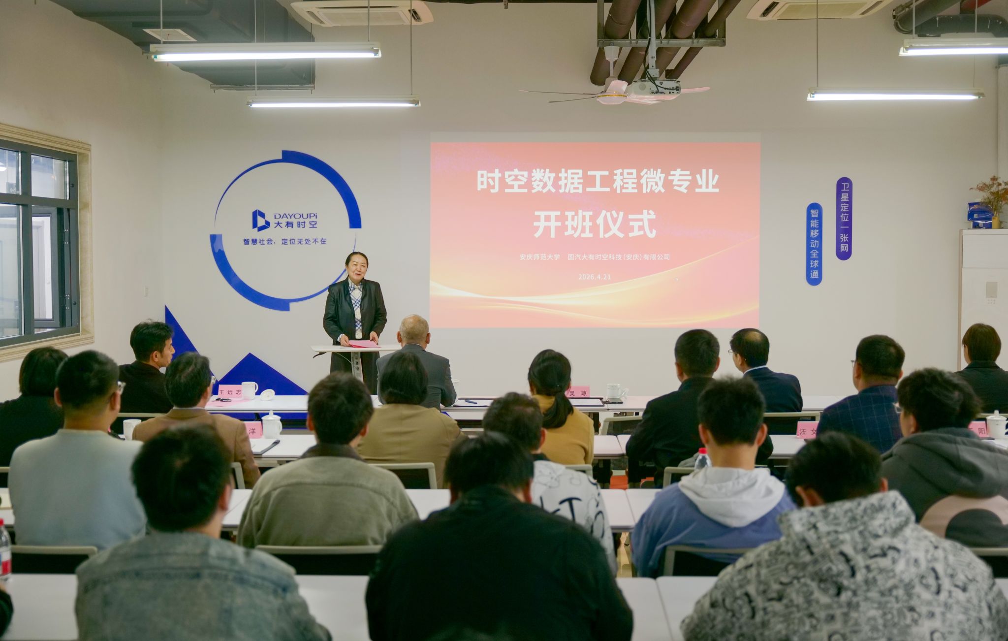 4月21日,学校举行“大有时空”时空数据工程微专业首期开班仪式。校党委常委、副校长吴琼出席仪式并致辞。安庆市人社局副局长方敏、大有时空公司董事长韩建新等政府、企业嘉宾,学校教务处负责人、人工智能与计算机学院(人工智能产业学院)领导班子成员、教师代表及首期全体学员参加仪式。