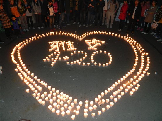 一句句祝福为雅安祈福,一支支蜡烛点燃希望。4月21日晚,环境与规划学院在文化路校区图书馆门前举行雅安默哀祈福活动。商丘电视台、《商丘师院报》等媒体对活动进行了跟踪报道。