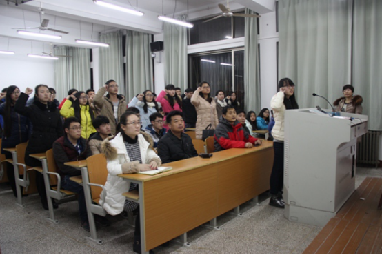 1月6日下午,环境与规划学院新党员入党宣誓仪式在文化路校区一号教学楼103教室举行,环境与规划学院党总支书记王东平,四个学生党支部书记李琳、魏理、刘伟堂、路璐及全体学生党员参加了宣誓仪式。