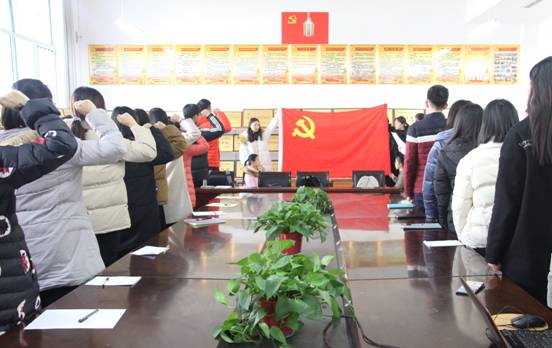 入党仪式在庄重严肃的氛围中进行,全体党员佩戴党徽。在领誓人张平同志带领下,全体预备党员面向鲜红的党旗,庄严宣誓,铿锵有力的宣誓声彰显出他们对党的热情及忠诚,在党旗下,同学们接受了一次身心的特殊洗礼。