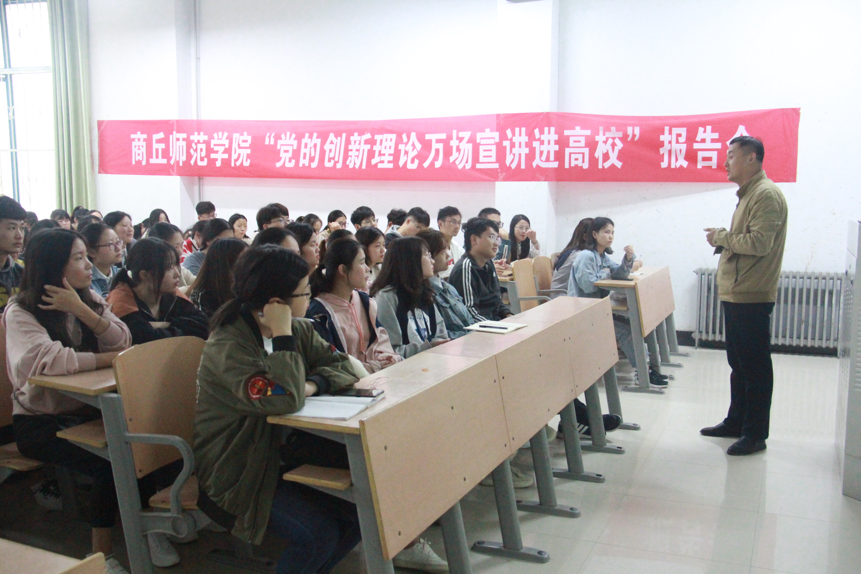 10月11日,ballBET贝博BB艾弗森于梁园校区举办“党的创新理论万场宣讲进高校”报告会,辅导员宣讲团成员魏理,以“正确认识新中国七十年发展的历史逻辑”为题,为全院学生党员和入党积极分子上了一堂生动的党课。
