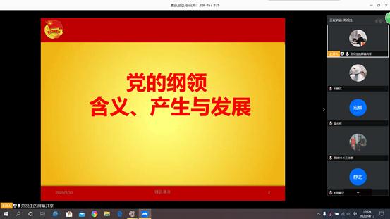 4月17日下午,ballBET贝博BB艾弗森副院长范况生以“凝聚在党旗下”为题,通过腾讯会议平台为入党积极分子上了一节精彩的线上党课。