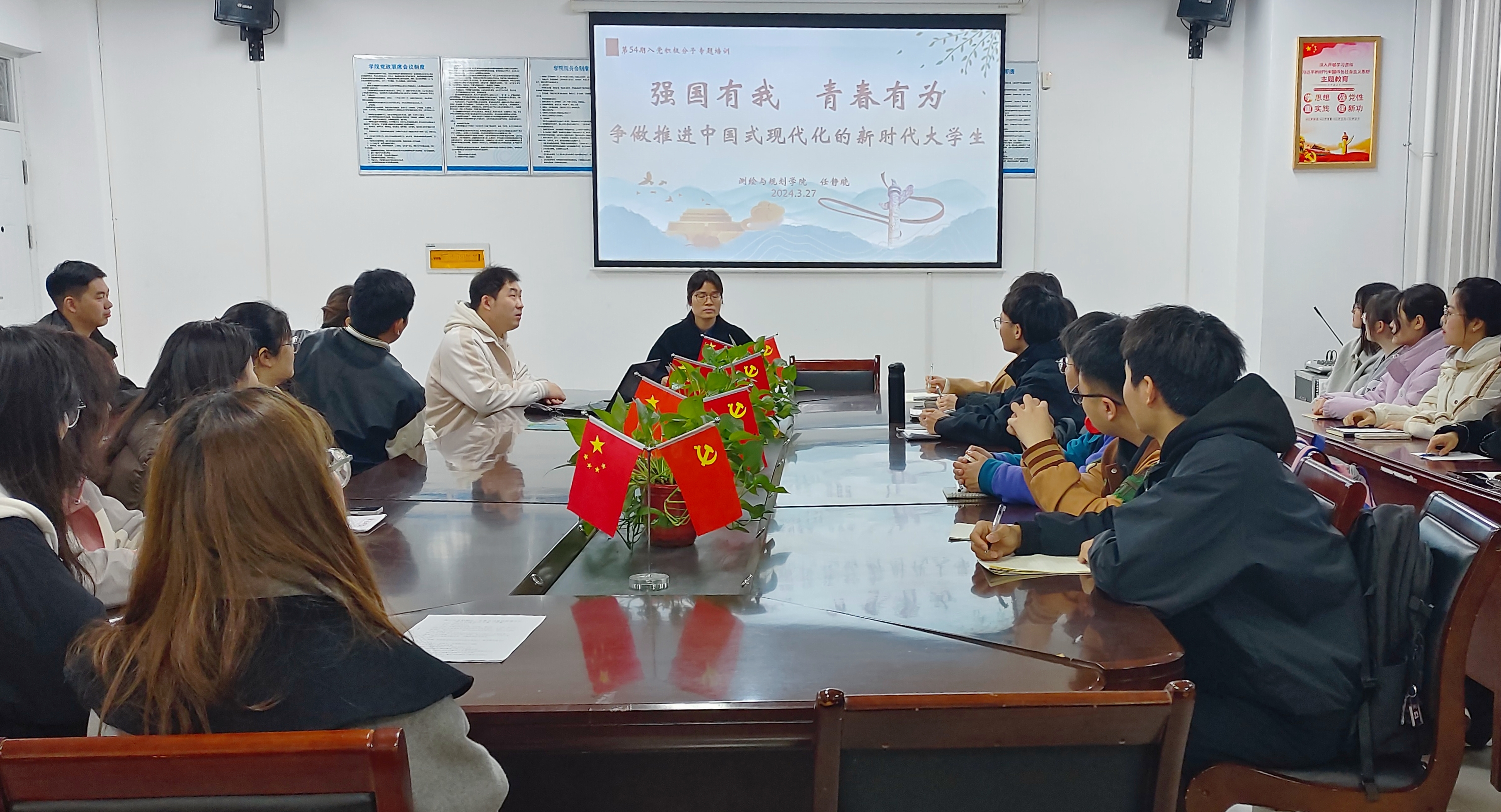 3月27日,学生第三党支部书记任静晓以《强国有我 青春有为 争做推进中国式现代化的新时代大学生》为题讲授了党课。她表示:“新时代大学生要从百年党史中产生的优良传统、红色基因中汲取思想道德营养,从百年党史中涌现出来的优秀共产党人的感人道德事例中获得提升道德修养的动力,提升道德修为,明大德、守公德、严私德,追求更有高度、更有境界、更有品位的人生。”