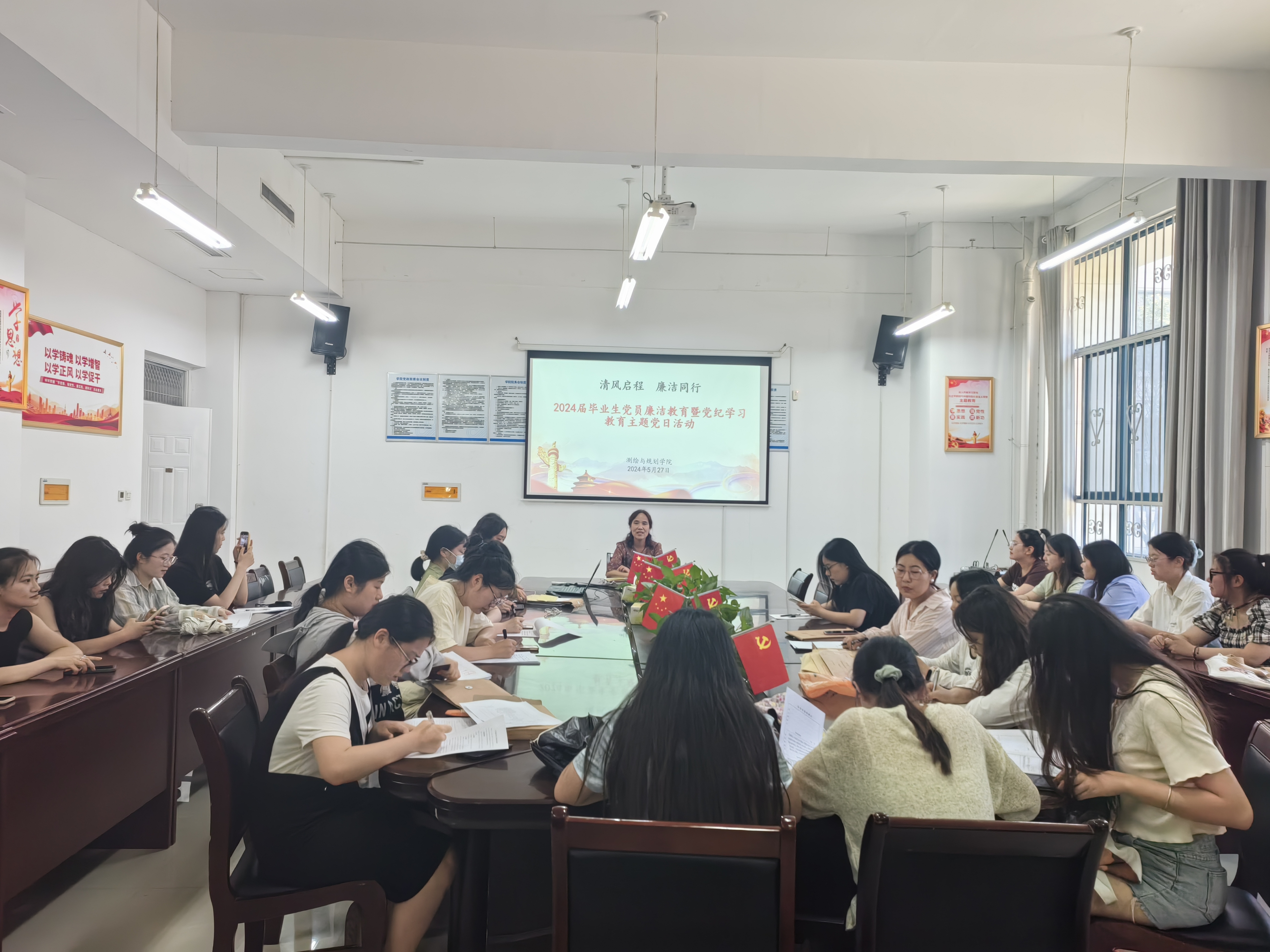 5月27日,ballBET贝博BB艾弗森在三商楼134会议室开展“清风启程,廉洁同行”毕业生党员廉洁教育暨党纪学习教育主题党日活动,2024届全体毕业生党员参加,活动由学院党委副书记王丽主持。