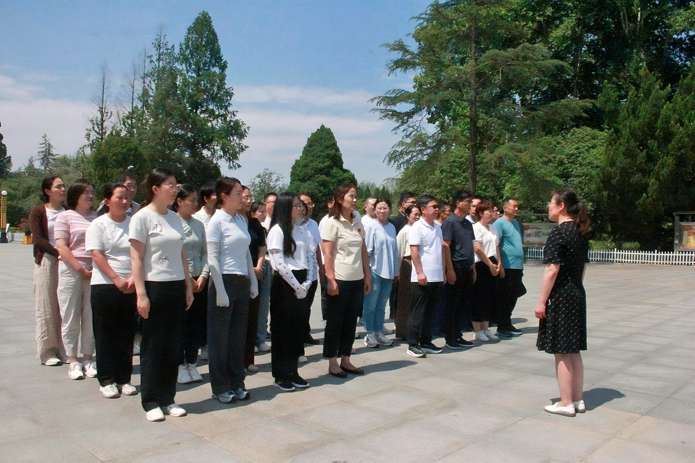 上午,全体党员抵达永城市淮海战役陈官庄纪念馆。在淮海战役烈士纪念碑前,学院党委书记路利和党委副书记、院长贺振代表全体党员同志向在淮海战役中牺牲的烈士们敬献花篮,并鞠躬默哀、缅怀先烈。随后,党员代表王珍同志带领全体党员重温入党誓词并庄严宣誓,宣誓声整齐划一,铿锵有力。随后,大家在讲解员的带领下认真参观了纪念馆。在讲解员的深情讲述中,大家身临其境地感受到了革命先烈在战火纷飞的岁月里不怕牺牲、众志成城的革命精神和坚定信念。参观过后,大家纷纷表示要以革命先烈为榜样,从革命先辈事迹中汲取精神力量,在工作岗位上恪尽职守,砥砺前行,为学院发展和学校建设作出更大贡献。