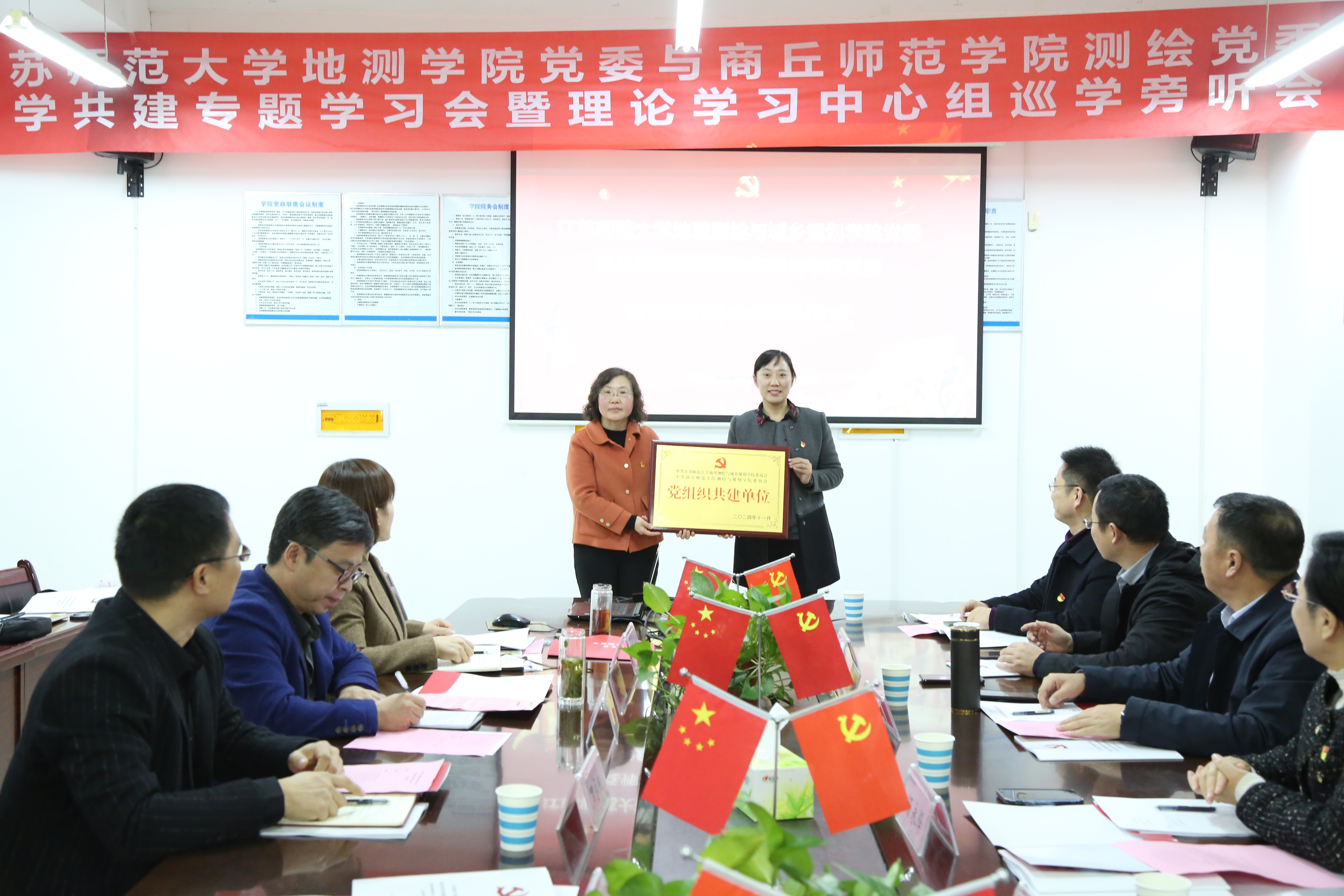 活动分两个阶段进行,第一阶段首先举行了中共江苏师范大学地理测绘与城乡规划学院党委和中共版权所有 中国·bb贝博艾弗森(有限公司)官方网站-Weixin百科党委党组织联学共建仪式,并开展了第一次联学共建专题学习会暨理论学习中心组集体学习研讨,分享学习体会。第二阶段,双方院长分别介绍了学院的基本情况,包括学院架构、学科设置及师资力量,分享了办学特色和优势以及存在的问题。接着双方围绕申硕建设、协同提质计划、人才培养等方面工作进行深入研讨交流。