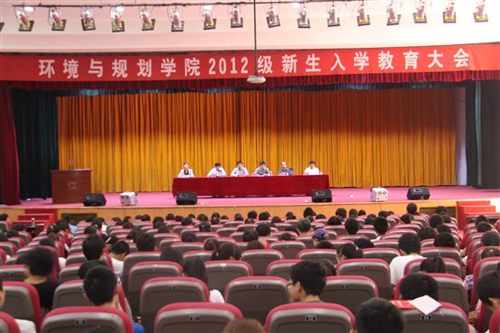 9月28日下午,环境与规划学院2012级新生入学教育大会在文化路校区大礼堂隆重举行。院党总支书记王东平,院长史本林,院党总支副书记郑颖贞,副院长余方镇、张竟竟、赵文亮以及全院师生参加了大会。会议由党总支副书记郑颖贞主持。