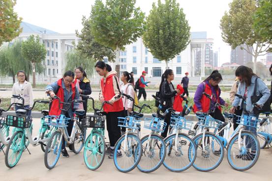 首先,志愿者们按照服务区域进行分组,有序展开服务活动。活动中,志愿者们积极参与,齐心协力,克服困难,他们将杂乱无序的共享单车搬到指定停车点,整理成排,整齐摆放,。经过他们的一番努力,排列整齐的单车成为校园里一道靓丽的风景线。最后,志愿者们纷纷表示,身为当代大学生,要有道德、讲文明、正风气,做到文明出行,文明停车。