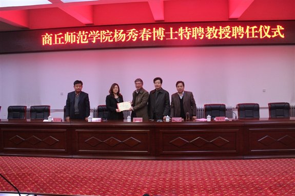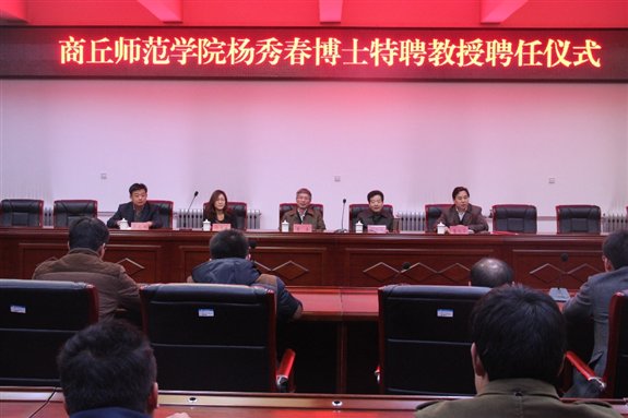 11月20日,商丘师范学院在平原路校区1号行政楼417会议室举行对中国农业科学院杨秀春博士的特聘教授聘任仪式。校长曹奎,副校长陈向炜,人事处处长李可亭,环境与规划学院有关负责人及师生代表参加了聘任仪式。仪式由李可亭处长主持。