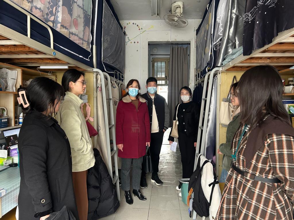 在查访中,大家深入学生宿舍,重点围绕学生宿舍卫生状况、消防安全、有无吸烟情况、私拉乱接电线等安全隐患情况开展了针对性检查。王丽叮嘱同学们,春季是传染病高发期,要做到勤通风、勤打扫,牢固树立安全防患的思想,做好防火用电风险规避。