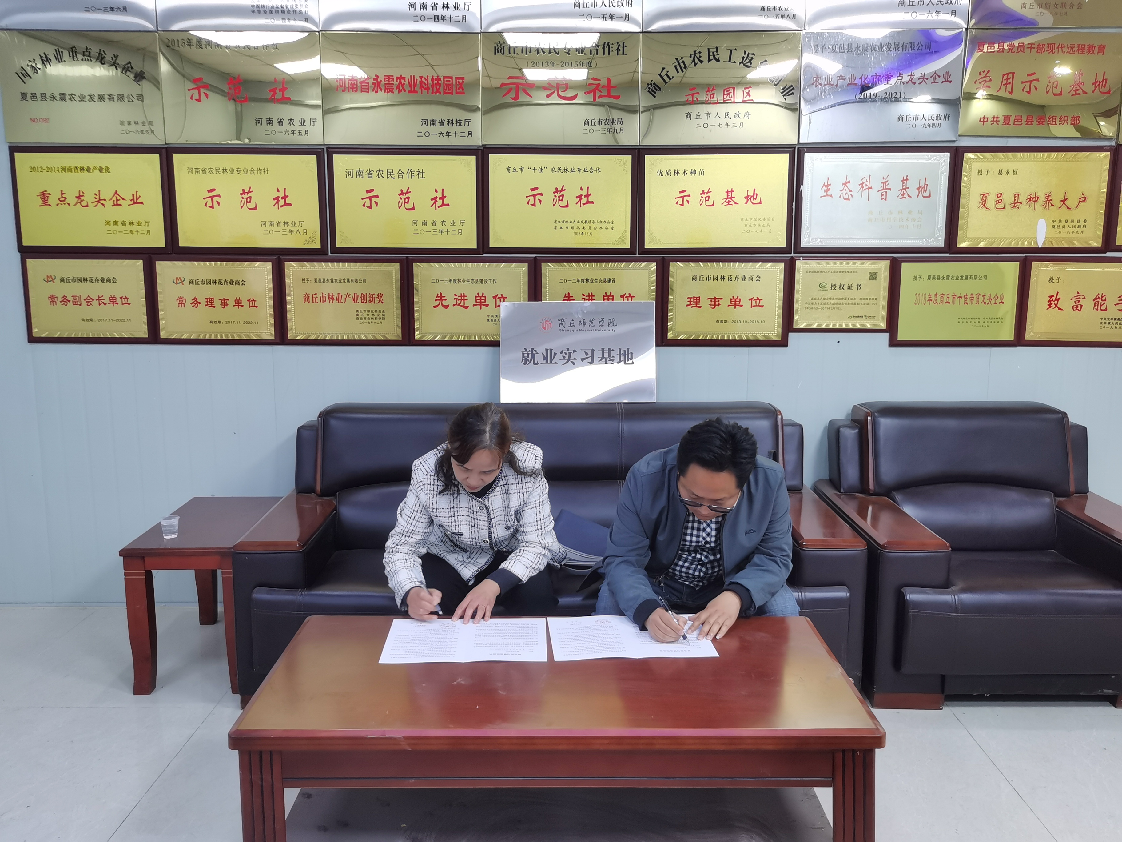 在夏邑县永震农业发展有限公司,厂长王行军、总工程师冯献宾、销售经理靳留魁亲切接见了王丽一行,双方在热烈的气氛中进行了座谈交流。王丽书记介绍了此行的目的、学院的发展现状等;冯献宾介绍了公司发展历程、业务范围以及发展前景等。接着,双方签订了《商丘师范学院毕业生就业实习基地协议》,举行了就业实习基地授牌仪式。最后,在冯献宾的引领性,一起参观了公司生产场地和科研成果。