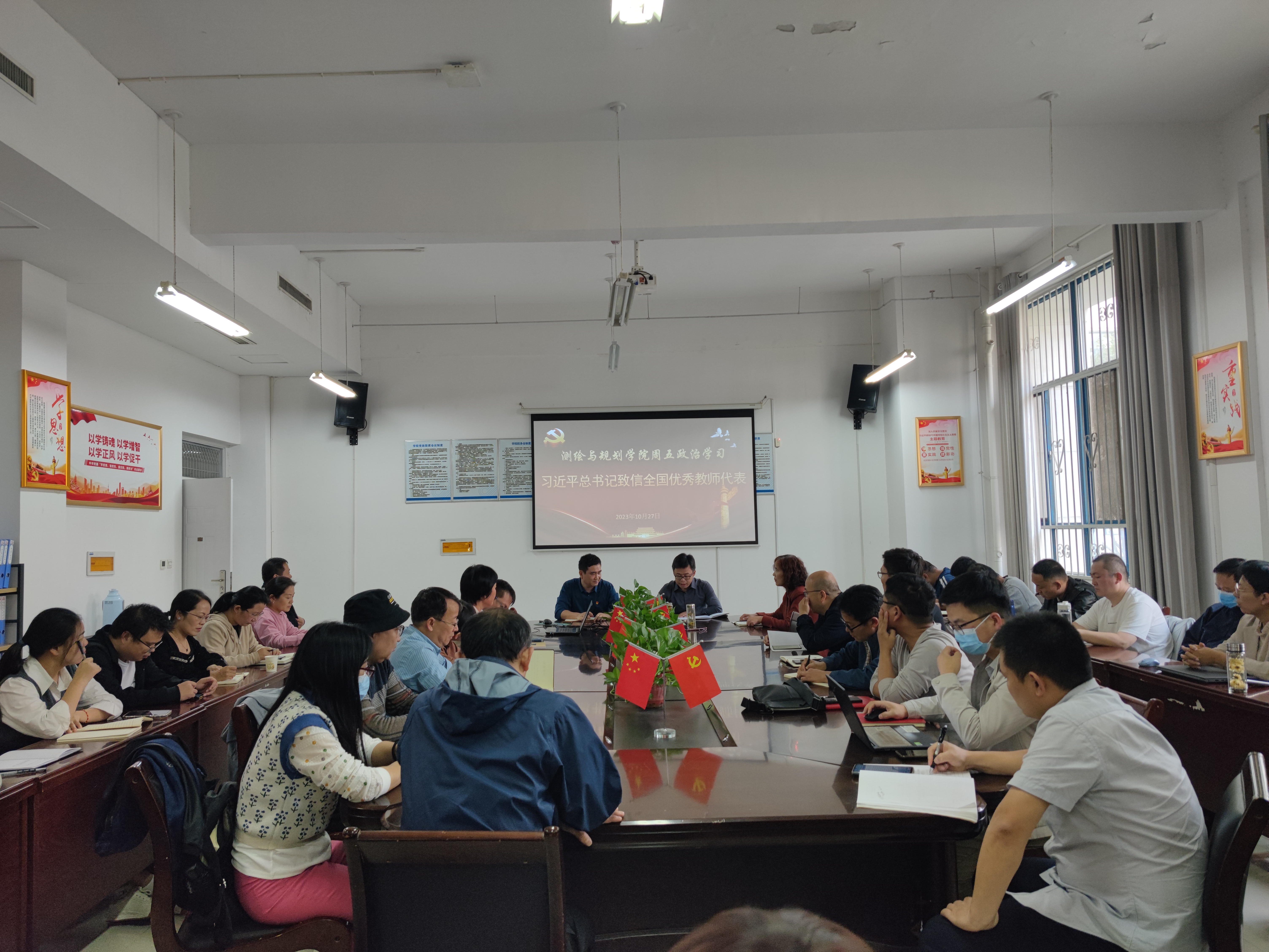 会上,学院副书记、院长贺振领学了习近平总书记致全国优秀教师代表的信。在信中,习近平总书记深刻阐释了教育家精神的丰富内涵和实践要求,要求教师队伍牢记为党育人、为国育才的初心使命,树立躬耕教坛、强国有我的志向和抱负。