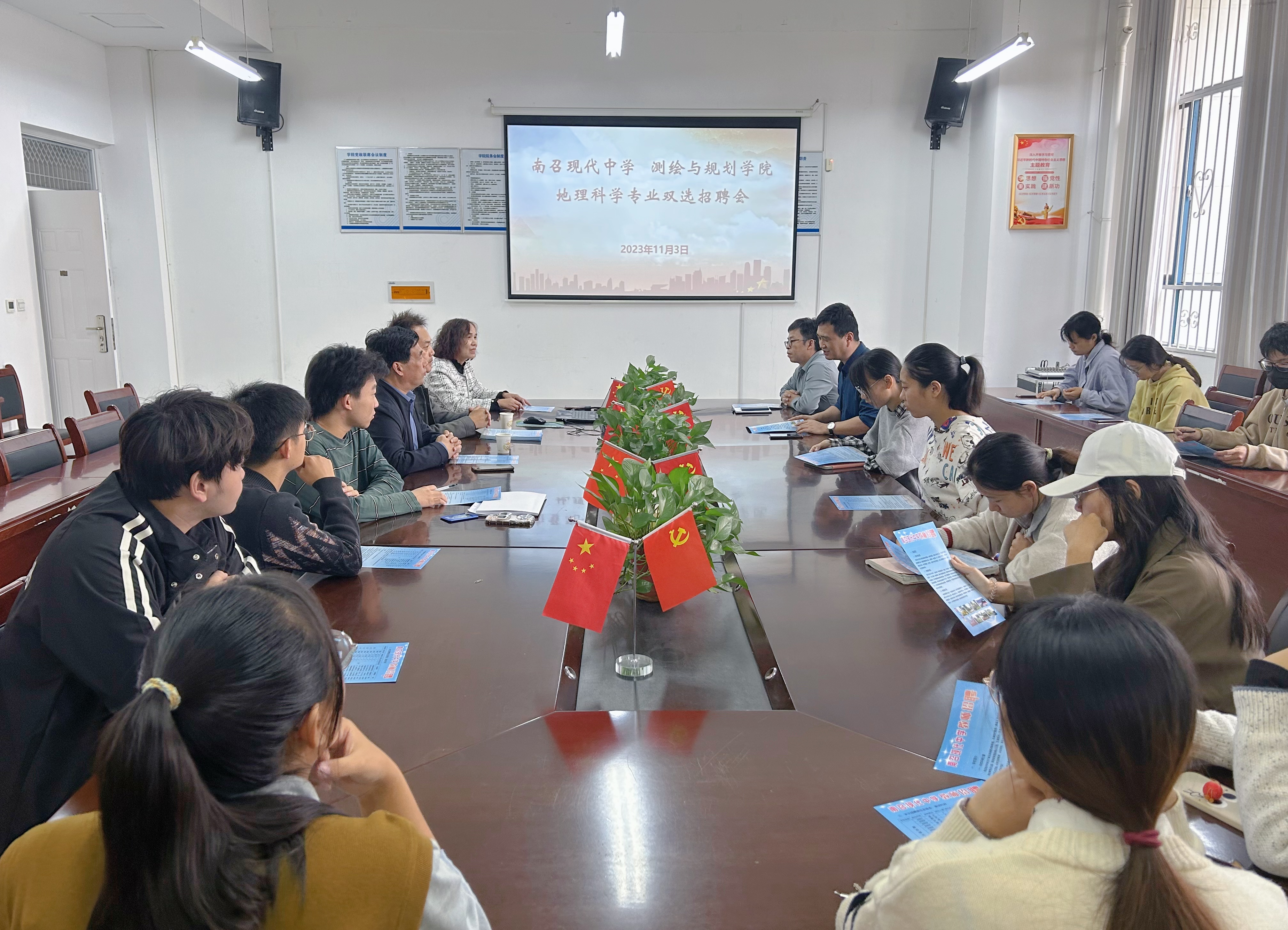 11月3日上午,ballBET贝博BB艾弗森于三商楼133会议室举办双选招聘会。南阳市南召现代中学校长孙庆功一行莅临贝博官网作招聘宣讲,ballBET贝博BB艾弗森党委书记时光、院长贺振和毕业班部分学生参加招聘会。