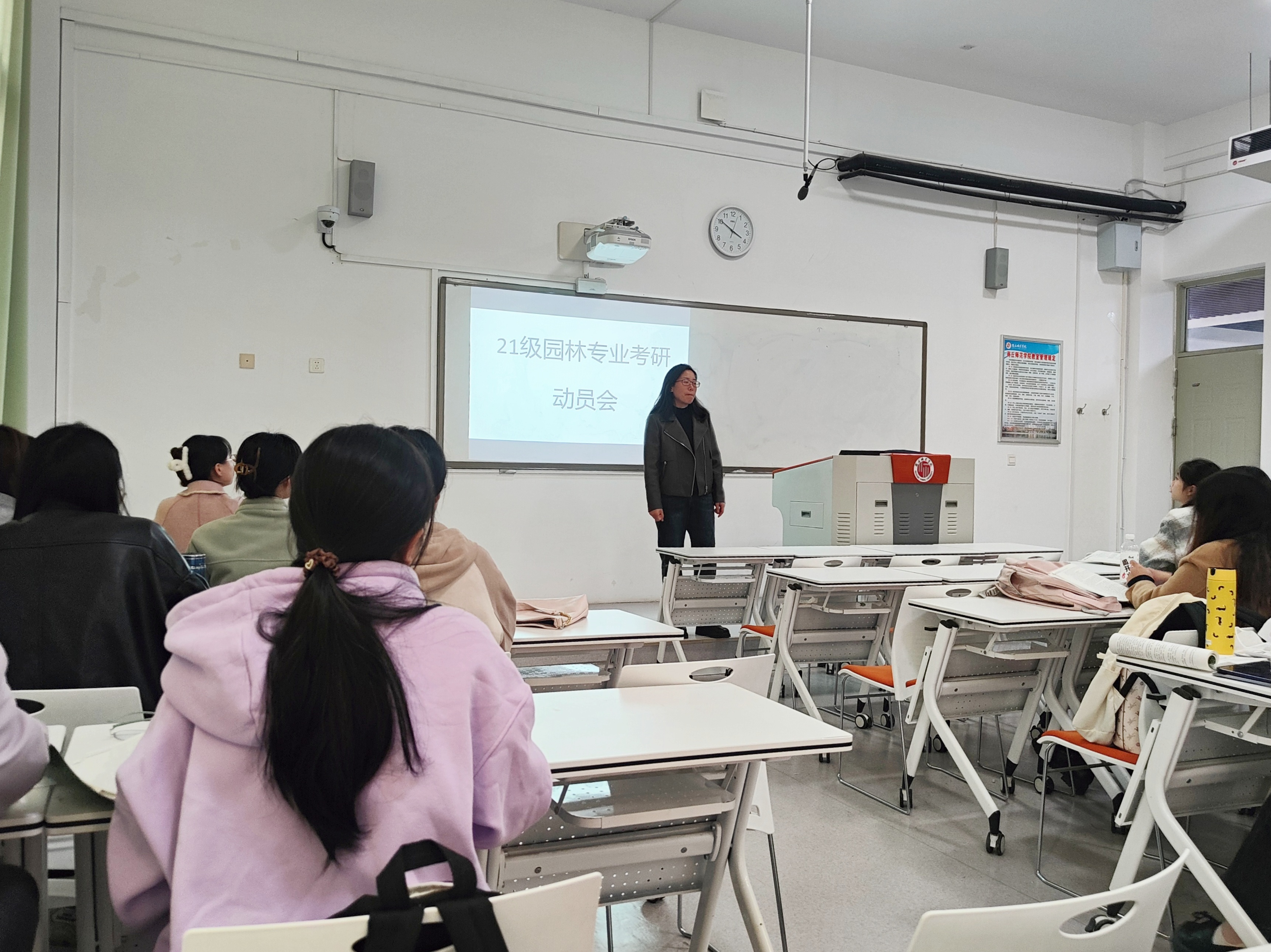 为帮助学生了解考研形势,指导大家树立正确的考研观与就业观。11月9日,ballBET贝博BB艾弗森园林21-1班于梁园校区开展专业考研动员会。园林21-1班全体同学参加了此次会议。会议由园林21-1班班主任娄喜艳主持。