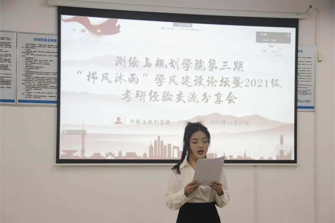 为发扬考研传帮带精神,帮助大三学子全力备战考研,11月25日,ballBET贝博BB艾弗森于三商楼134会议室,开展了第三期“栉风沐雨”学风建设论坛暨2021级考研经验交流分享会。21级辅导员苏婉月,李亚南老师,学院城乡规划、地理信息系统、园林三个专业的优秀毕业生代表和各专业大三学生参加此次考研经验分享会,此次分享会由张萱宇主持。