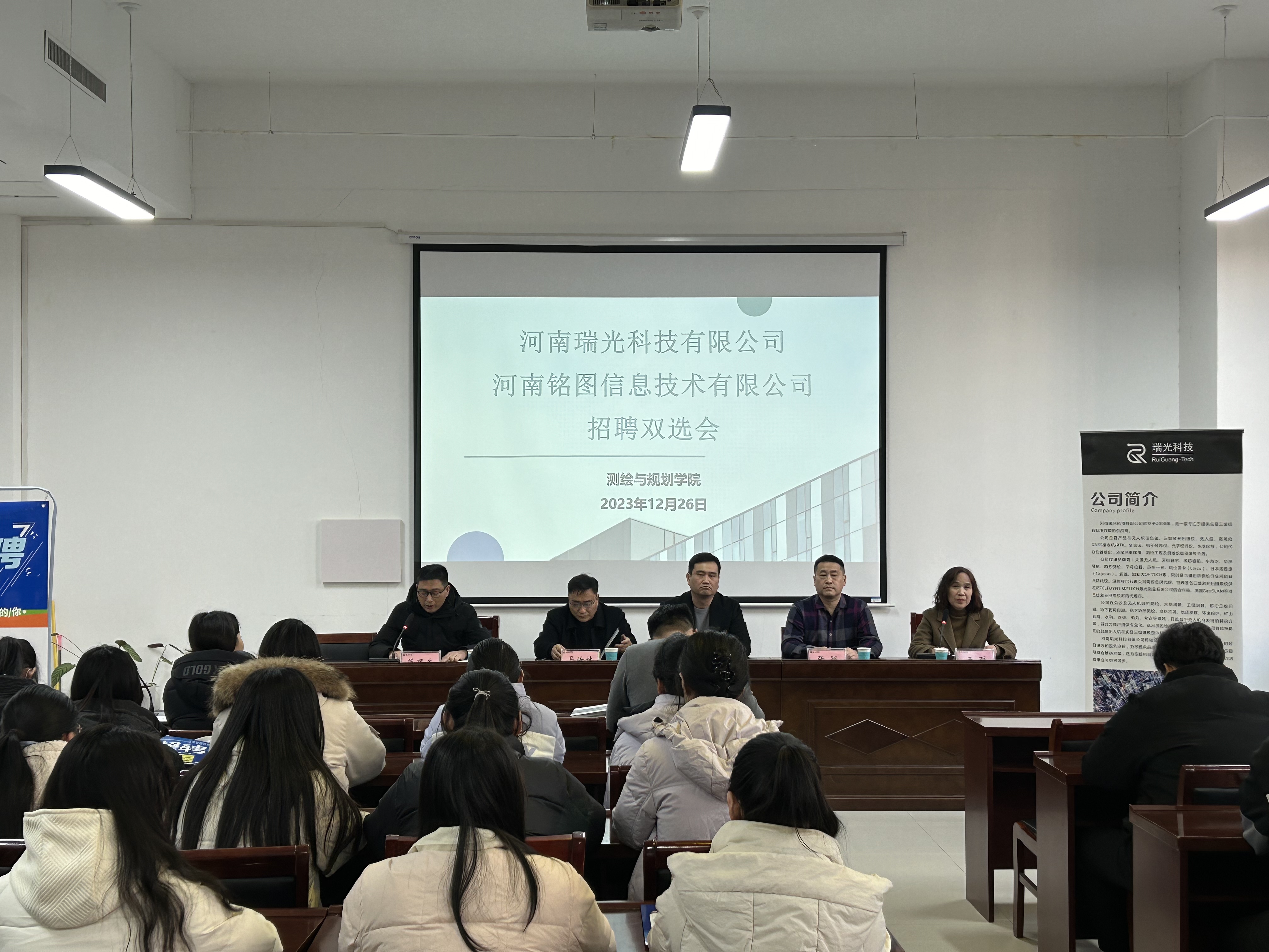 会上,范况生代表贝博官网向大家详细介绍了学院基本情况。河南瑞光科技有限公司和河南铭图信息技术有限公司分别为同学们介绍了公司概况、招聘岗位及薪资待遇,并就同学们关心的问题做了详细的解答。学院领导与用人单位就人才培养质量、专业对口情况及社会需求现状进行了深入交流。