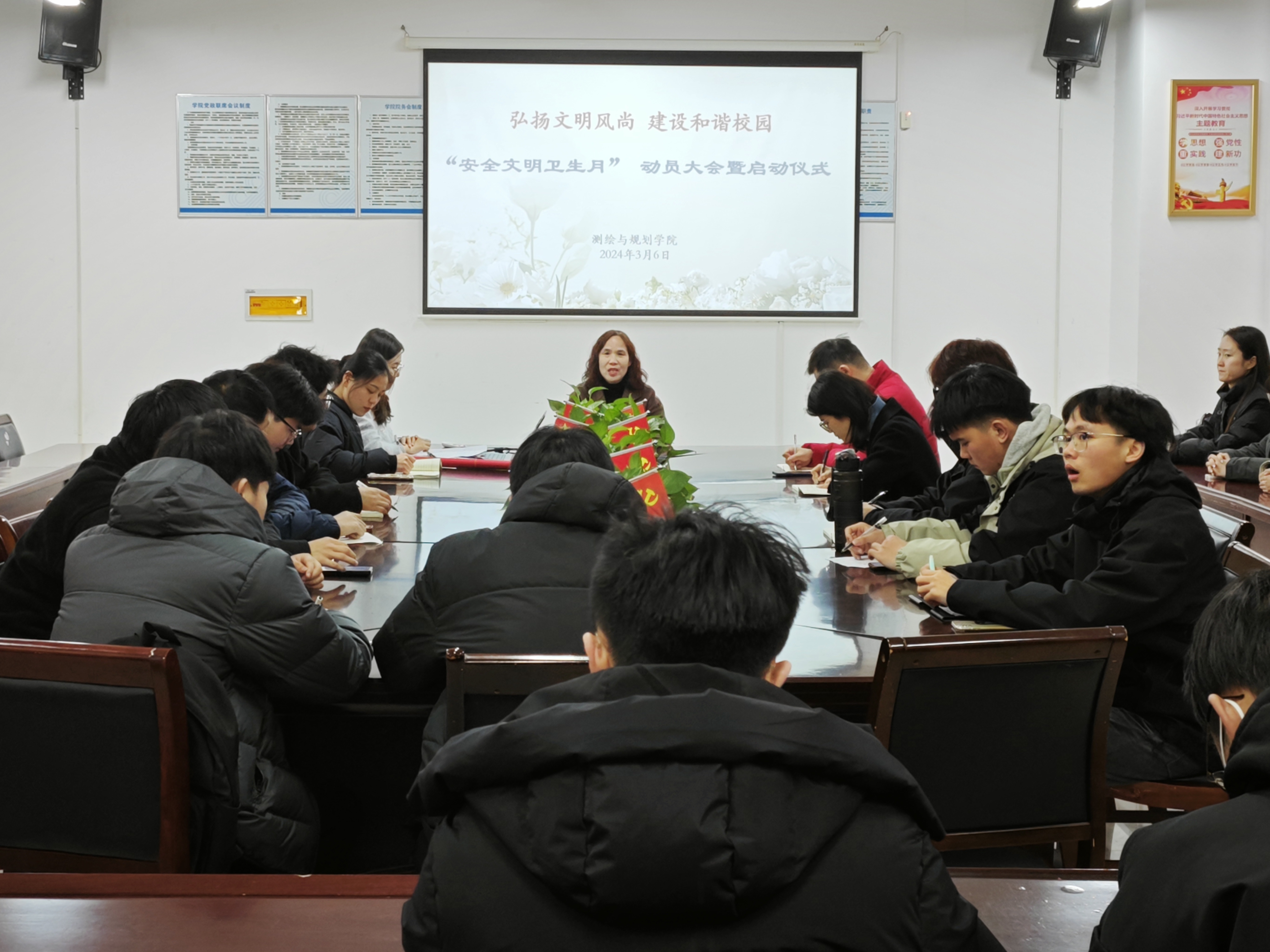 最后,王丽强调:一是要提高站位,充分认识开展此项活动的重要意义;二是要树立主人翁意识,人人参与、人人有责,共同营造安全文明校园;三是要明确分工、压实责任,充分发挥好学生干部的榜样示范作用,确保活动开展落地生根;四是创新工作方法,务求活动实效。