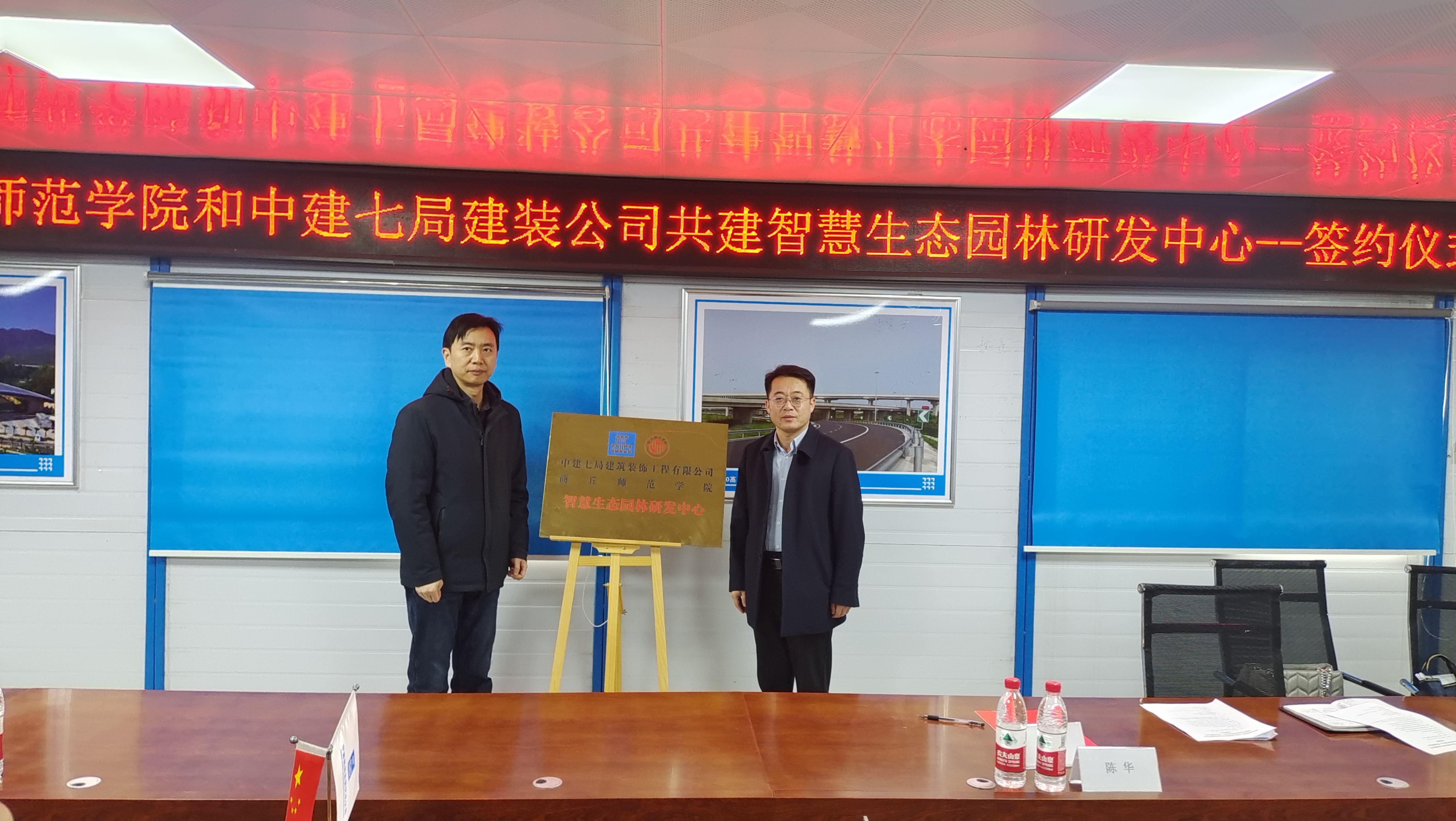 3月6日,贝博官网与中建七局建筑装饰工程有限公司举行合作共建“智慧生态园林研发中心”签约仪式暨访企拓岗活动。副校长翟滨出席签约仪式。