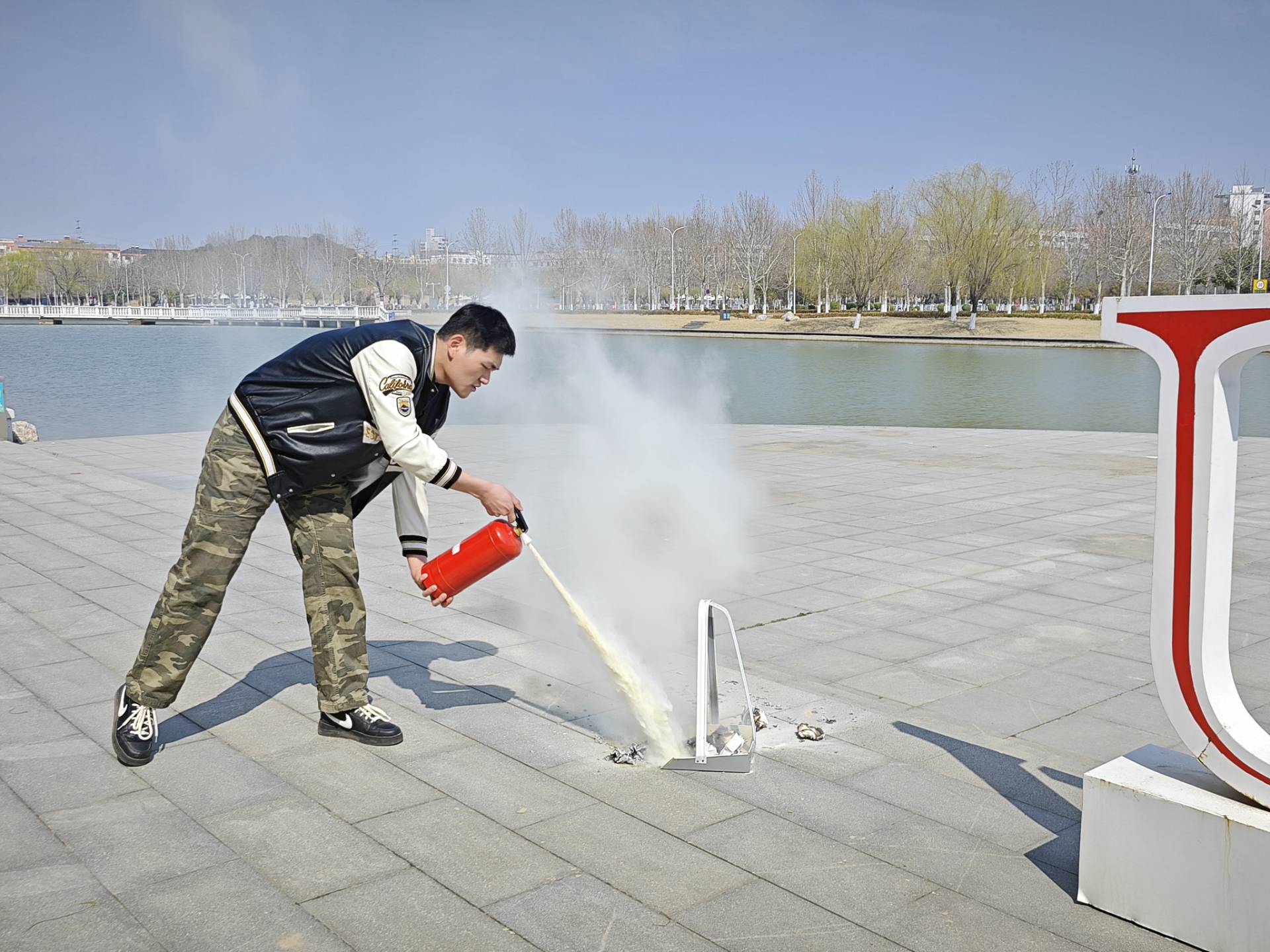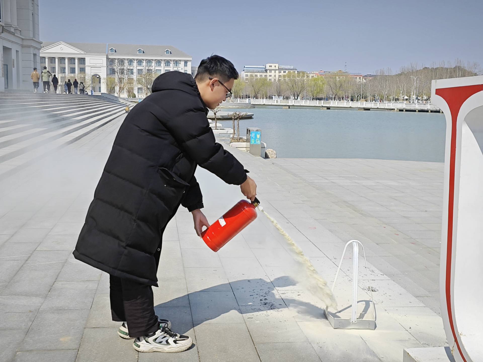 最后,参会人员到室外进行了灭火器的实操演练,掌握了灭火器的使用方法。
