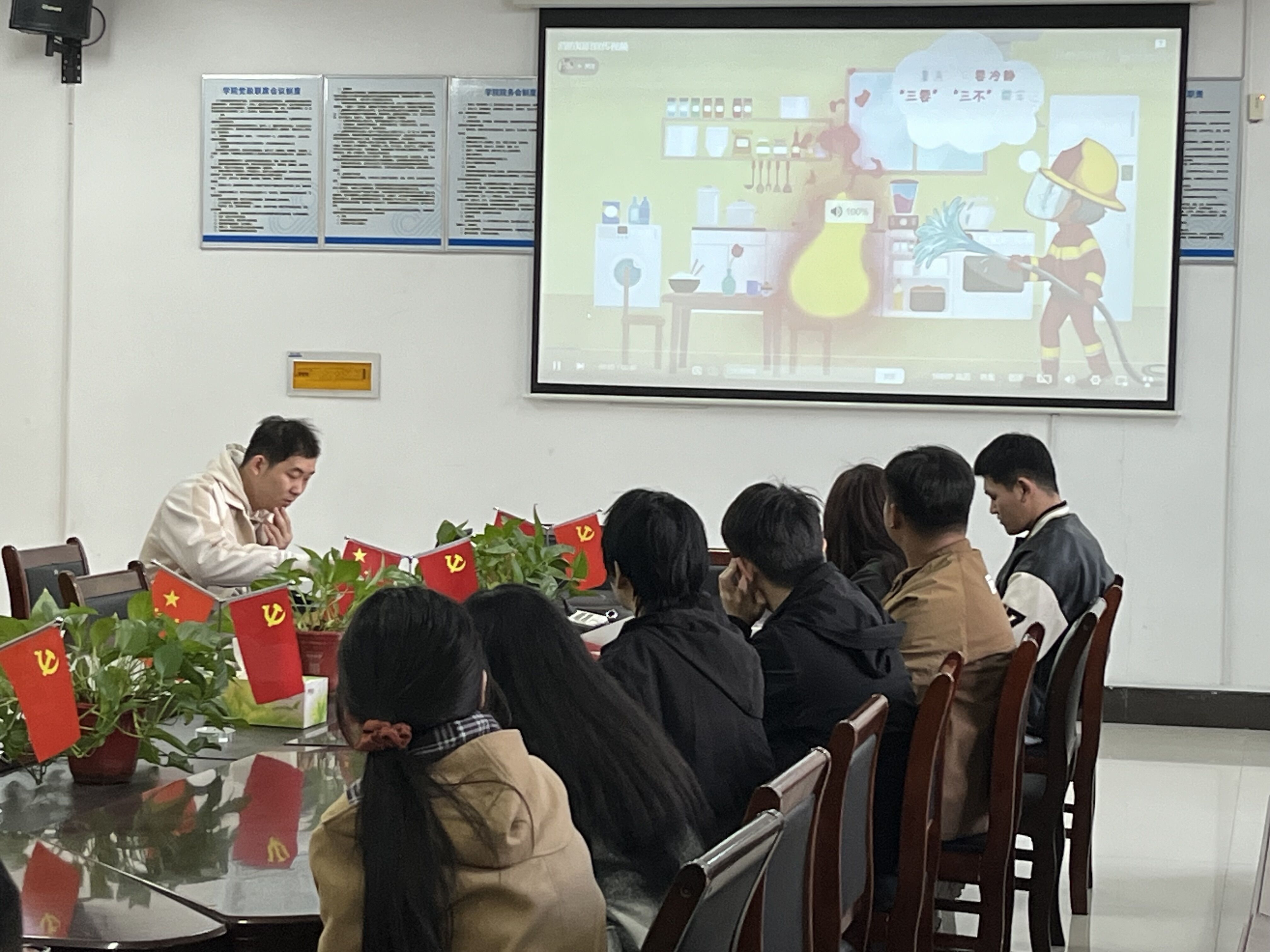 会议伊始,任静晓指出在消防安全大排查中出现的问题,建议同学们养成保持宿舍干净卫生的习惯,并强调禁止在宿舍有抽烟等具有安全隐患的行为,避免引起物品燃烧而引发火灾。同时,她希望各宿舍长承担起责任,关注室友的生活情况、心理健康。随后,张瑞杰从灭火器的分类、灭火原理、灭火器的使用方法等基本消防安全知识进行讲解,重点介绍了有关干粉灭火器的使用知识和使用过程中的注意事项,并通过观看相关视频,让学生们对消防安全知识有了进一步的了解。