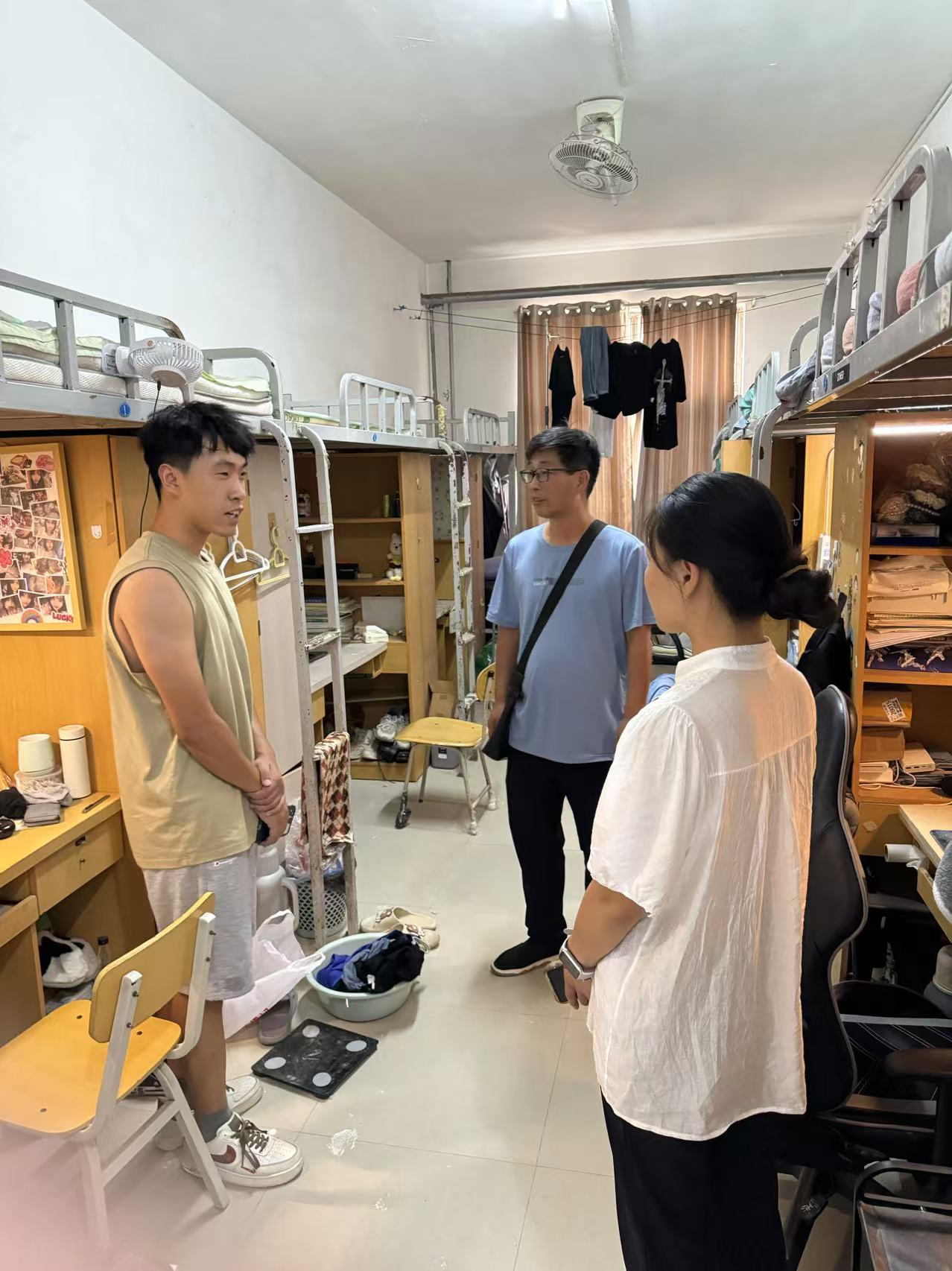 此次走访活动,不仅是对学生返校情况的全面摸底,更是学院领导与学生之间情感交流的重要契机。学院领导们每到一处,都与学生亲切交谈,询问同学们假期生活的点滴、返校途中的安全情况、新学期的规划与期待等。同时,还细致检查了宿舍的卫生状况、用电设施,确保每一位学生都能在安全、舒适的环境中开始新学期的学习生活。