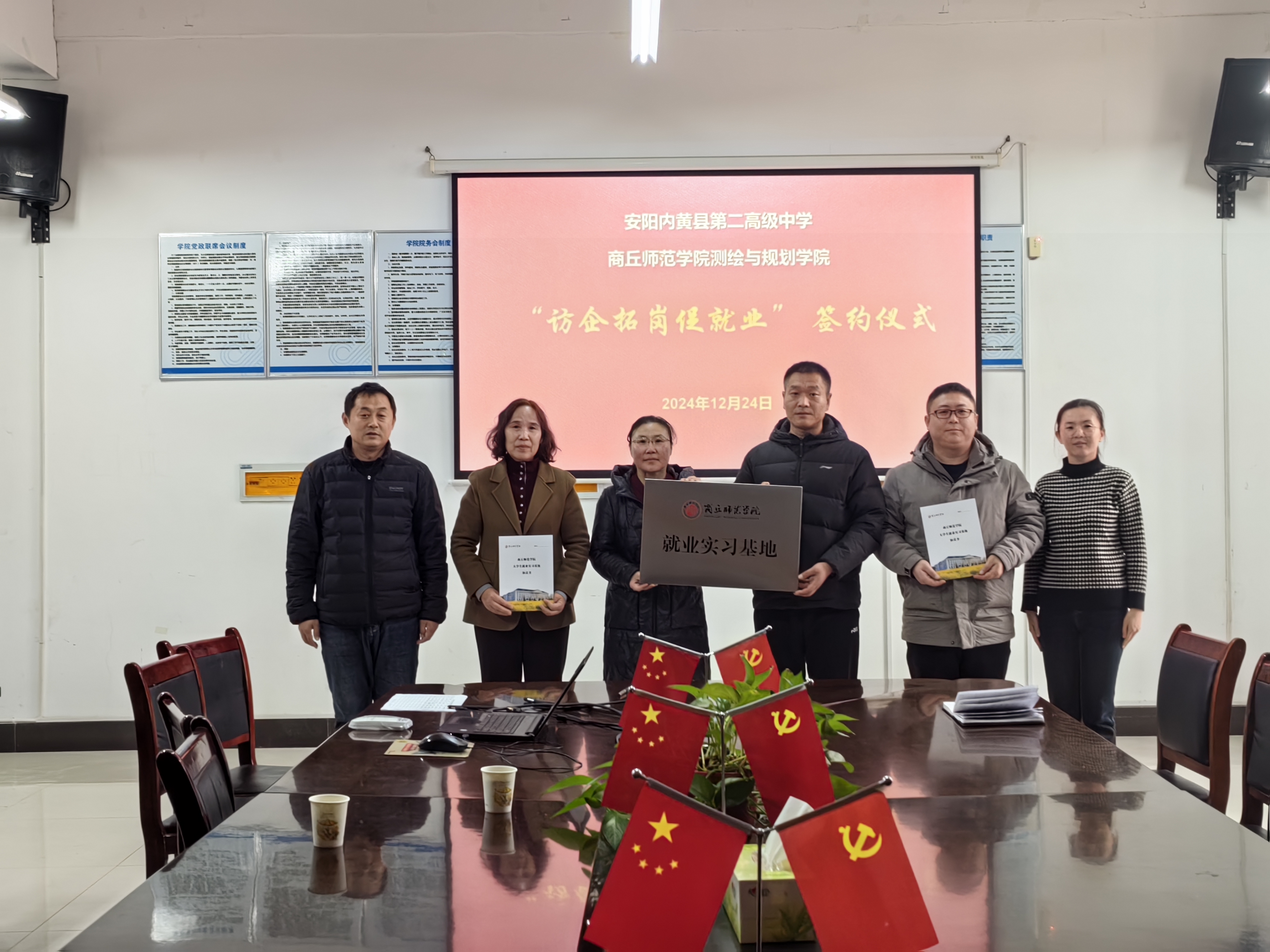 会上,党委书记路利对内黄二高一行的到来表示热烈的欢迎,并表示希望通过加强双方之间的深度交流与合作,为2025届毕业生提供高质量就业岗位。随后,双方分别介绍了学院和用人单位的基本情况,并就学生实习实训、学生就业、师资培养等方面进行了交流探讨。路利、赵威豫分别代表商丘师范学院与内黄二高签订了《商丘师范学院大学生就业实习基地协议书》并举行了就业实习基地授牌仪式。