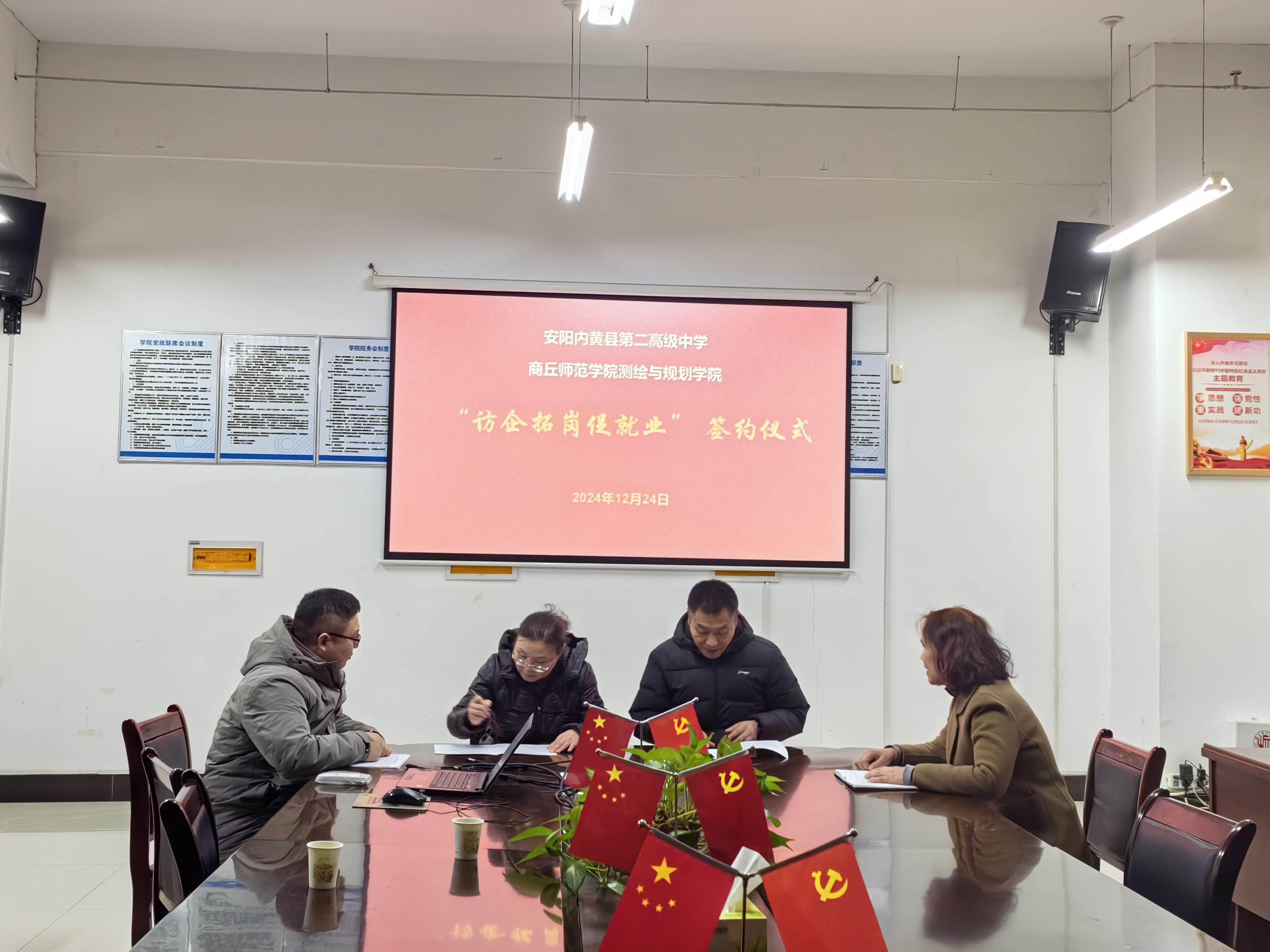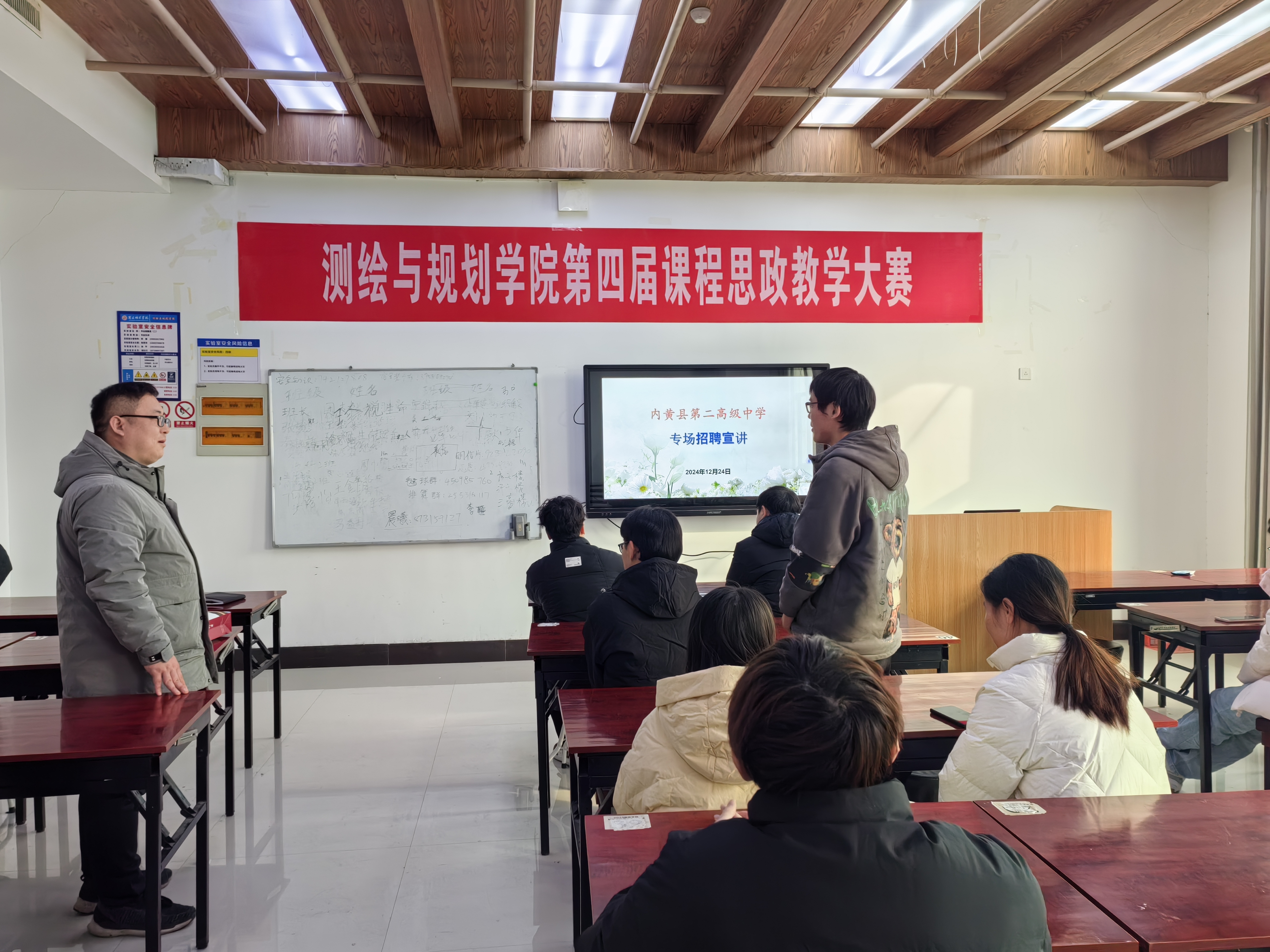 随后,内黄二高一行面向贝博官网2025届地理科学专业毕业生开展招聘宣讲。围绕学校概况、师资力量、硬软件设施、招聘要求及待遇福利等,双方展开详尽的交流。到场的毕业生进行了简单的自我介绍并表明了到贵单位求职意愿。最后,经协商,面试试讲环节将在线上进行。