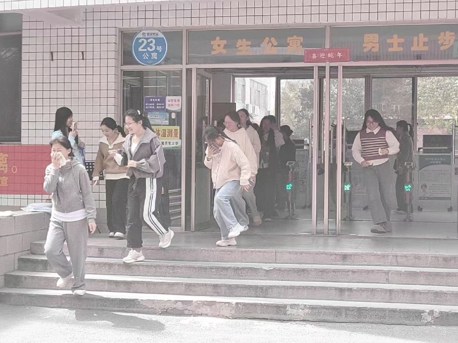 演练前,学院制定了细致的演练方案,明确了各环节流程与人员职责,对疏散路线、集合地点等关键信息进行了详细规划。中午1点,消防应急疏散演练正式开始。随着警报声骤然响起,宿舍楼内弥漫起滚滚浓烟,场景十分逼真。学生们迅速反应,用湿毛巾捂住口鼻,弯腰快步沿着指定疏散路线有序撤离。整个过程紧张有序。在工作人员的引导下,学生全部安全集合至楼外空地,展现出良好的应急处置能力。