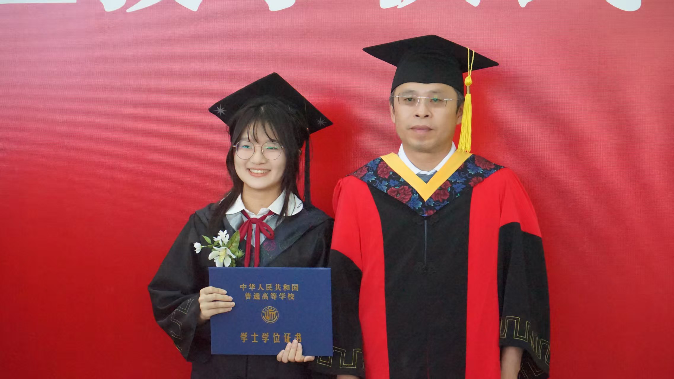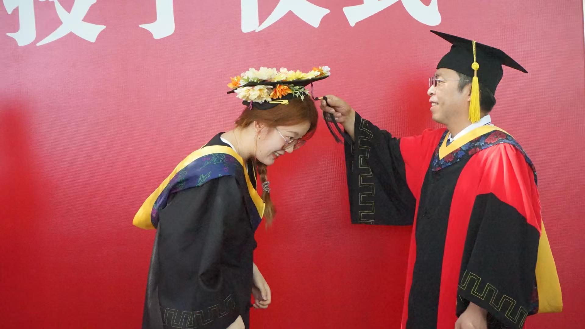 学位授予仪式上,副校长王晓征、院长贺振为毕业生们拨穗正冠、授予学士学位证书并合影留念。拨穗礼象征着学子们学有所成,即将展翅高飞,迈向人生新篇章。