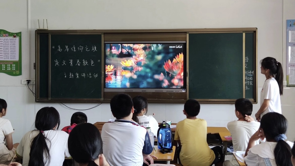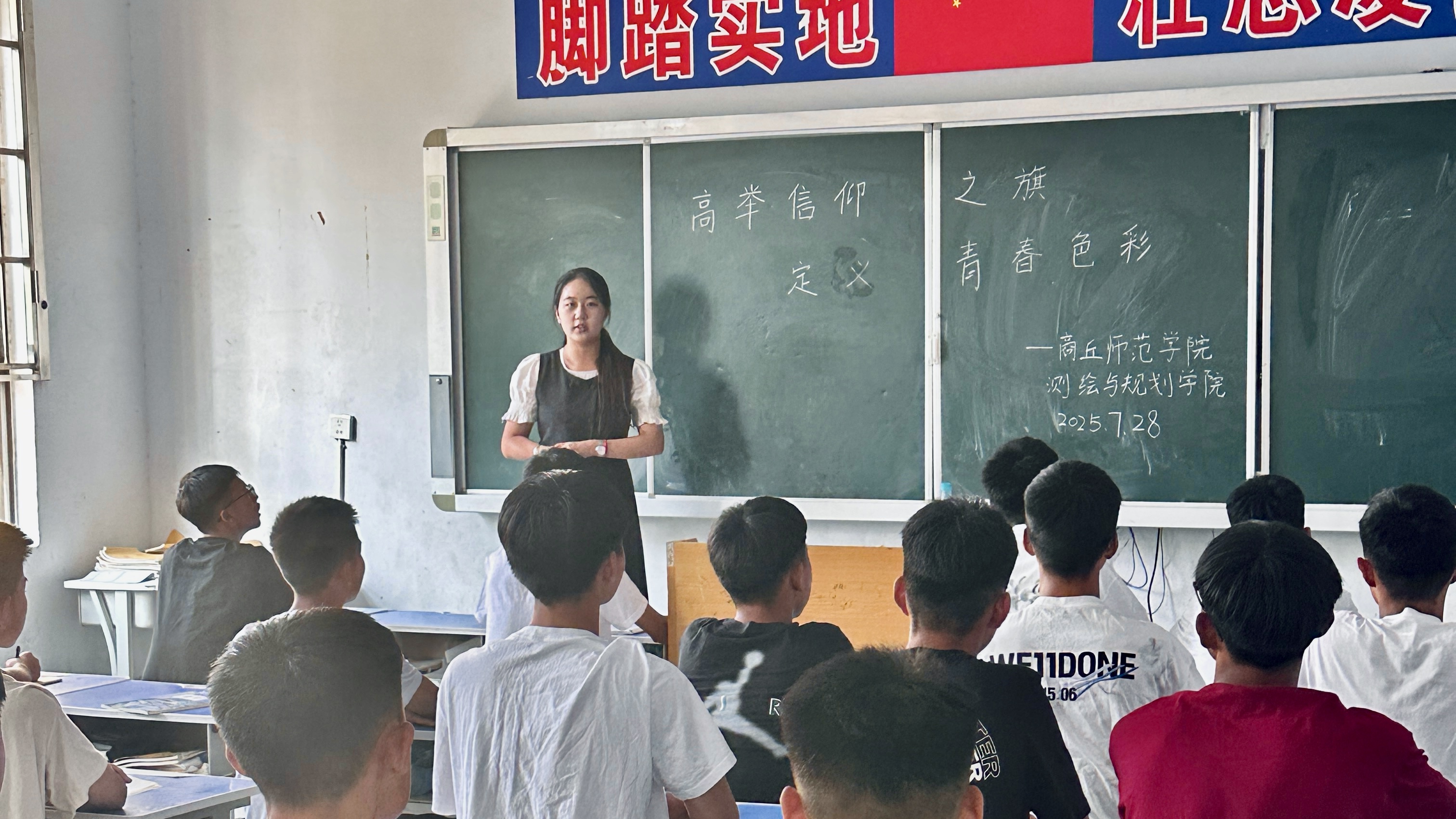 8月9日,宣讲团成员程敬在信阳市商城县汪岗镇开展理论宣讲,她从“两弹一星”精神展开,通过具象化的故事与贴近生活的引导,让孩子们感知信仰与青春的关联,以“青春是什么颜色”设问启思,讲述科研工作者隐于荒漠、以身许国的事迹,呈现其住帐篷、饮苦水却坚守“强祖国”信仰,以及突破原子弹、氢弹与卫星技术的历程。最后,提炼“两弹一星”精神核心,结合孩子们的日常,引导他们认识到信仰与青春的体现,鼓励他们以实际行动传承精神,让青春绽放“中国红”的绚丽色彩。