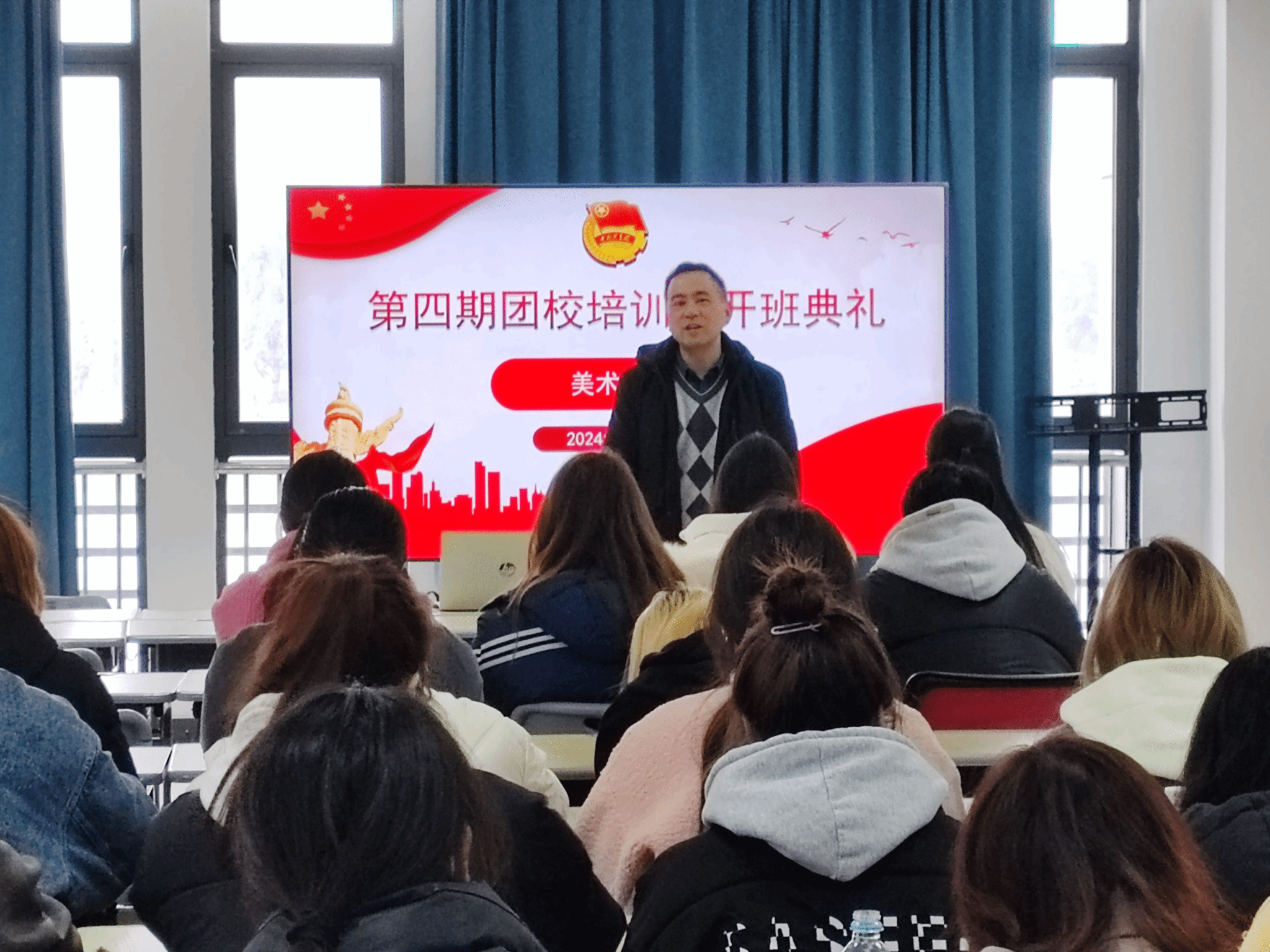 3月6日,美术学院举办第四期团校开班典礼.学院党委副书记金忠良、团委负责人、全体入团积极分子参加开班典礼。