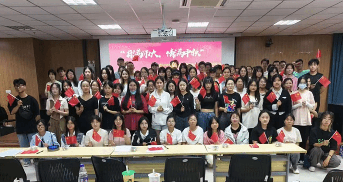 9月28日,在中秋、国庆双节到来之际,经济与管理学院在M112举办2023级留校新生中秋晚会,学院党委副书记周毅、全体新生班辅导员和100名新生留校同学参加。