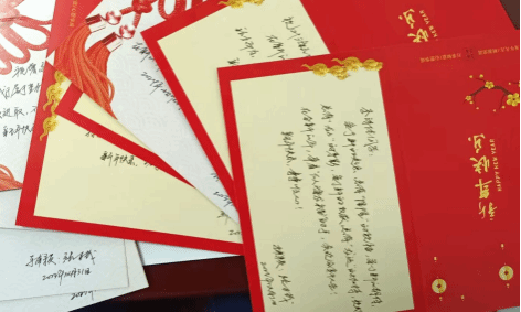 元旦前夕,张万茂以手写贺卡的形式,先后为2022级数字媒体艺术专业、2023级新闻传播学类专业(7)班、(8)班共112名学生送去新一年的祝福和期望。考虑到临近期末考试,学生们正处于备考阶段,为了不让大家分心,他特地等到各班级期末考结束,再亲手送出新年贺卡。