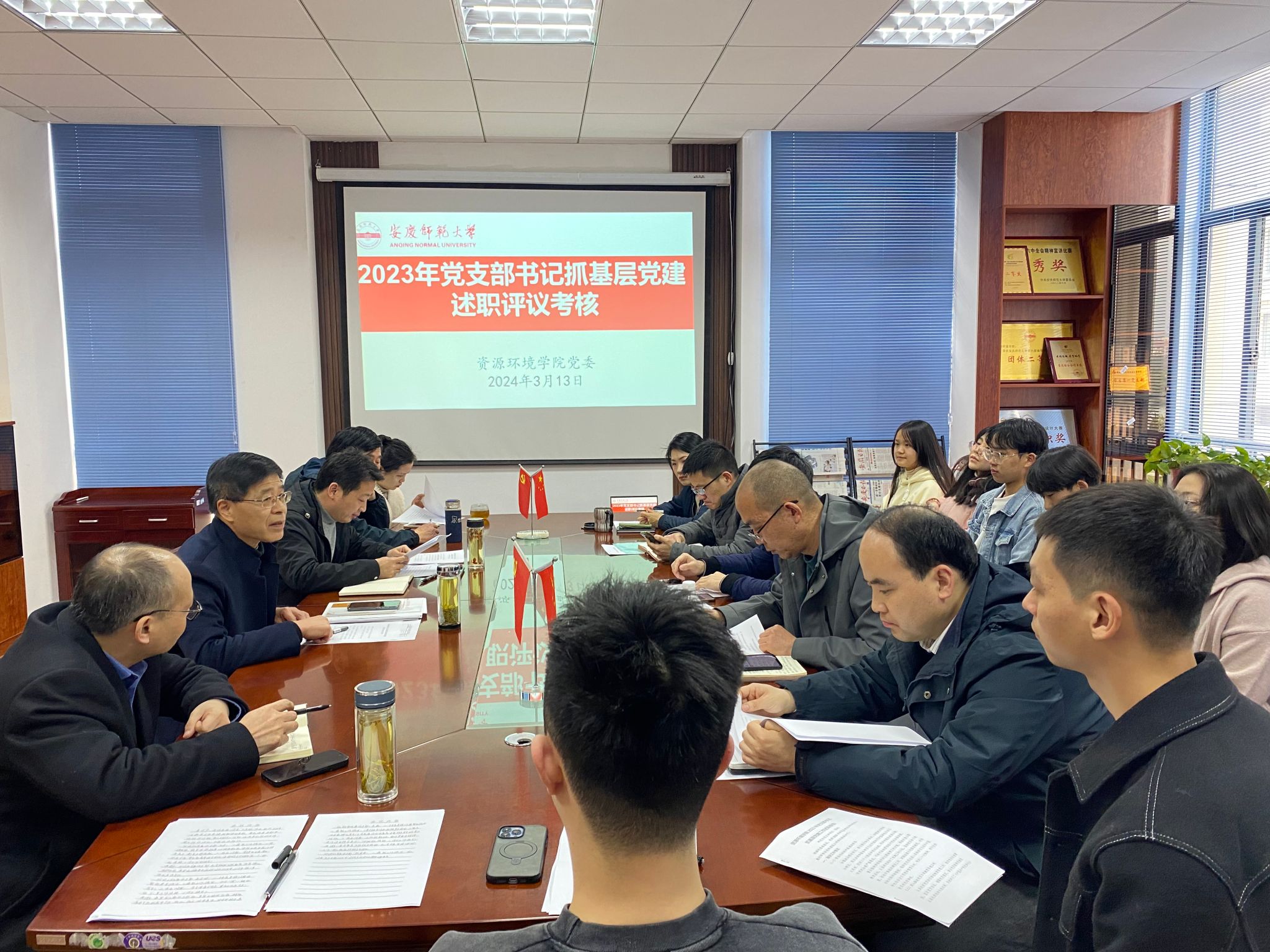 3月13日,资源环境学院在F316会议室开展2023年度基层党支部书记抓党建设述职评议考核会,学院领导班子、党委委员、纪委委员、各党支部书记及师生代表参加了本次会议,会议由学院党委书记夏宏宇主持。