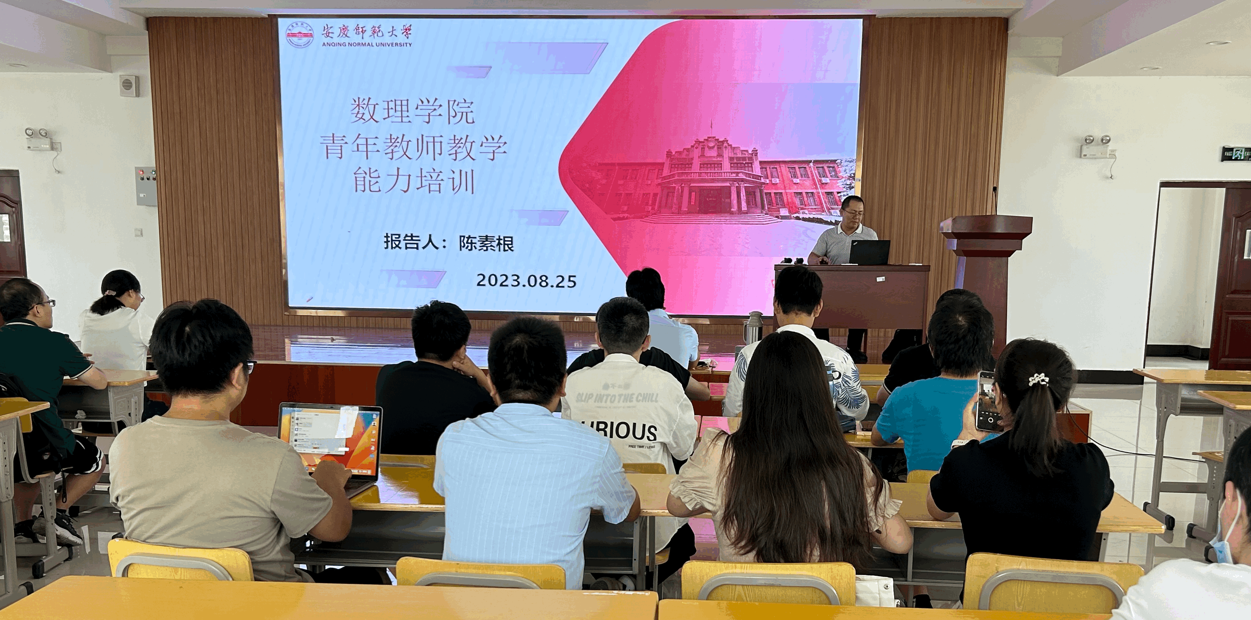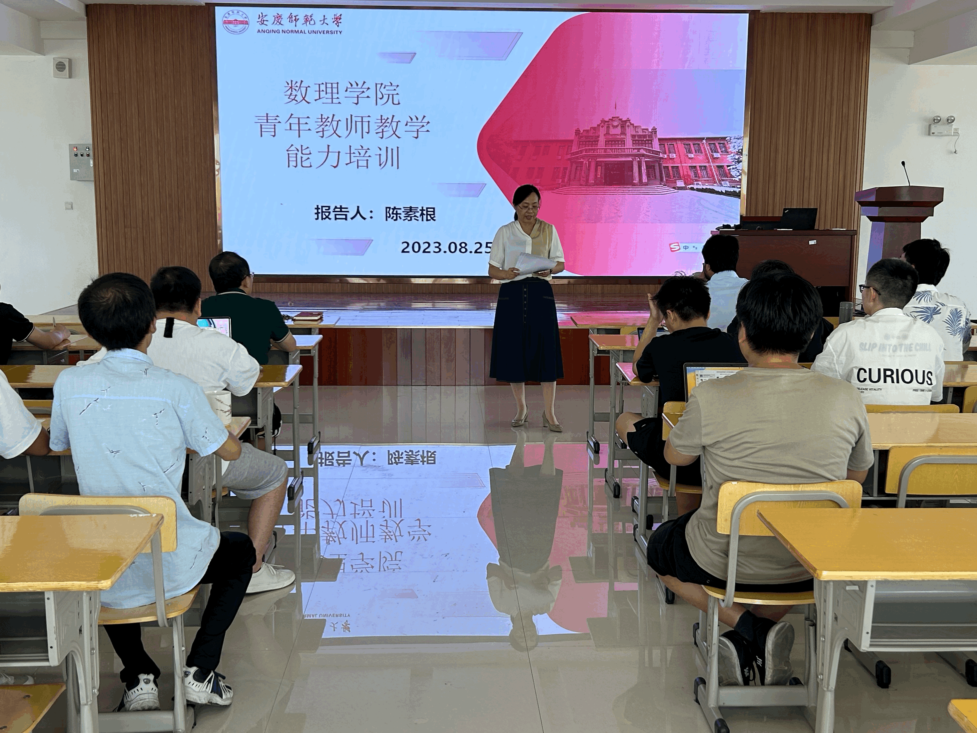 8月25日,数理学院在401报告厅举办青年教师教学能力培训与交流会。本次培训邀请数理学院资深教学专家陈素根教授担任主讲人,学院近3年入职的青年教师参加培训,会议由副院长易明芳主持。
